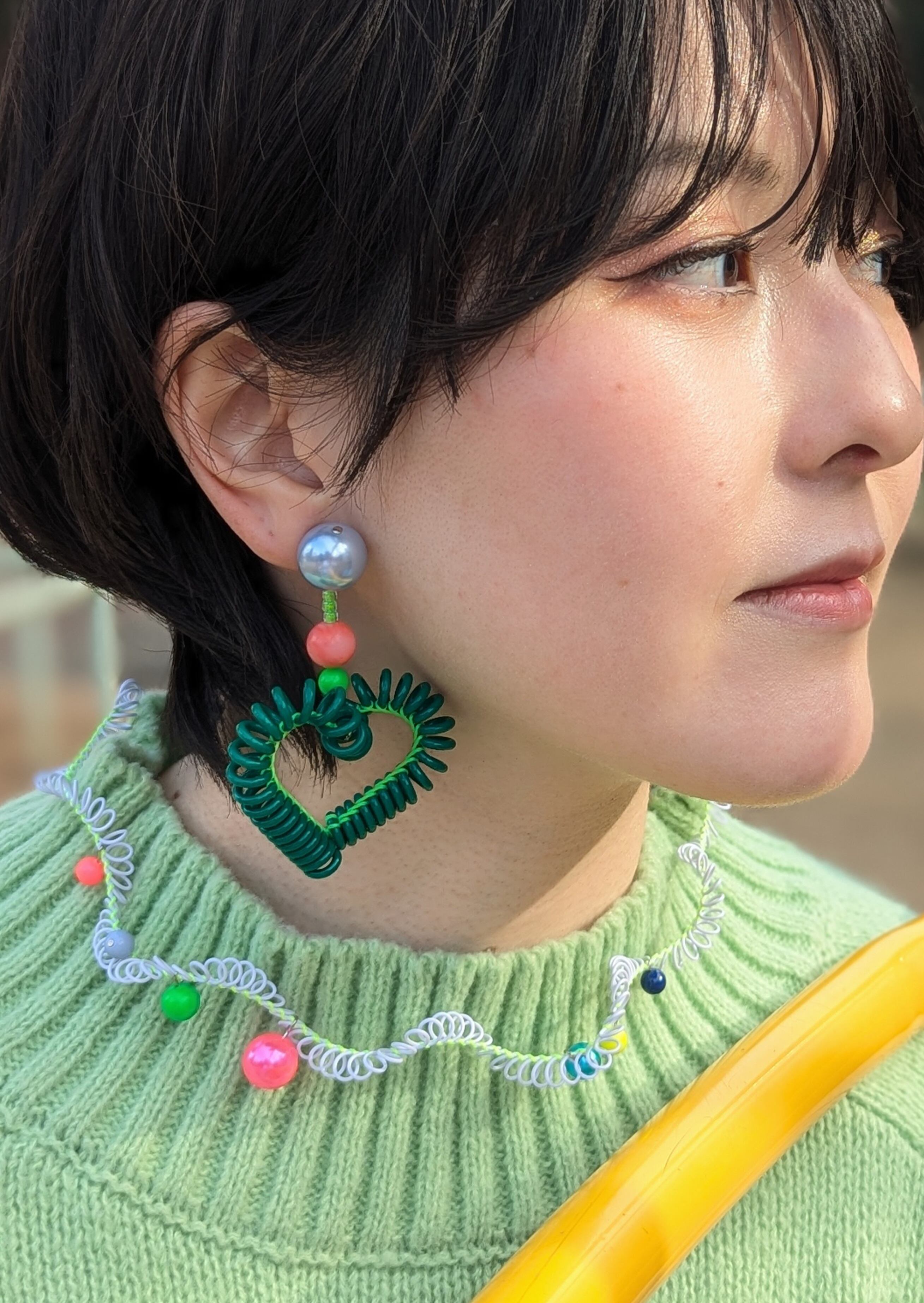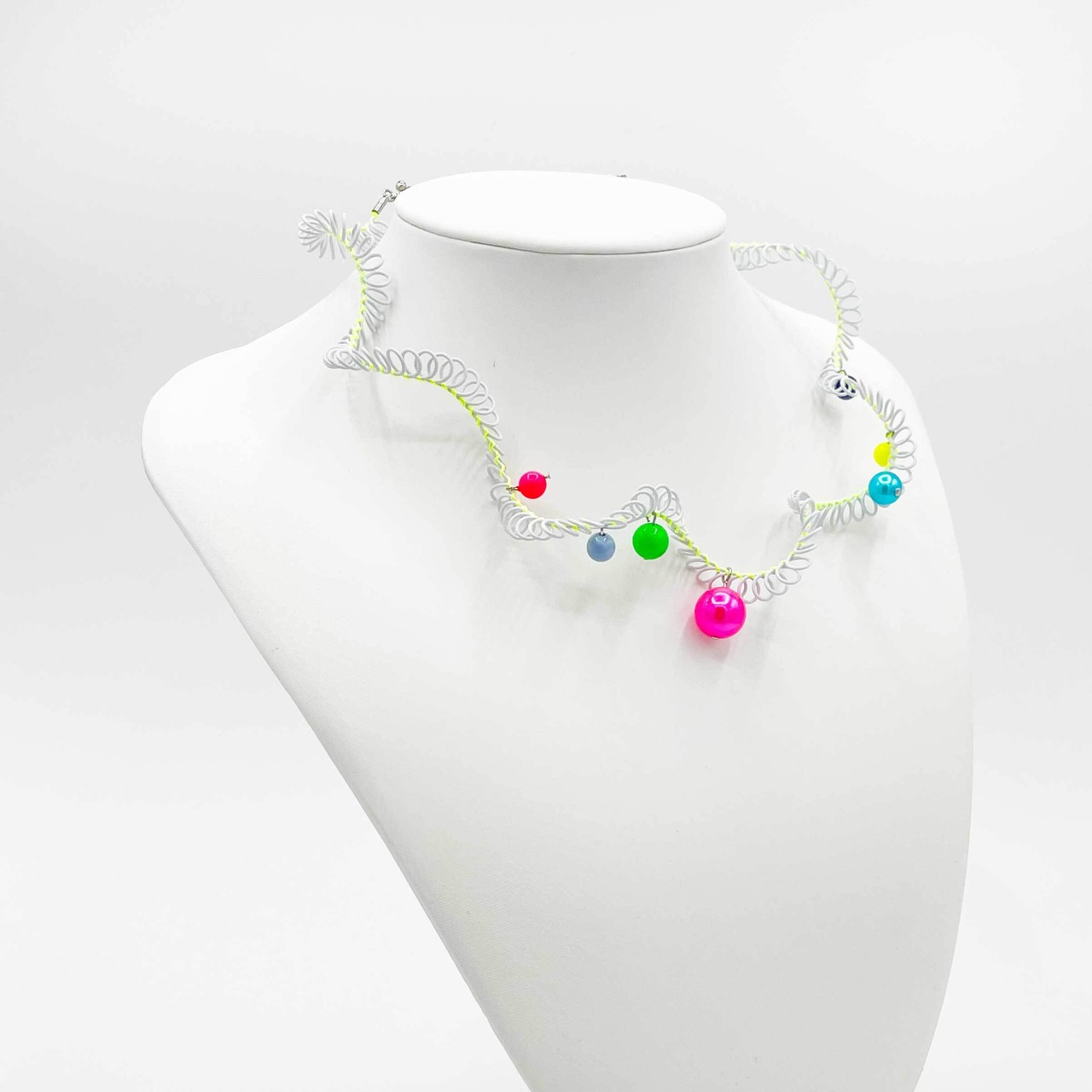 ワイヤーに糸を絡めて作った他にはない遊び心溢れるデザインのネックレス