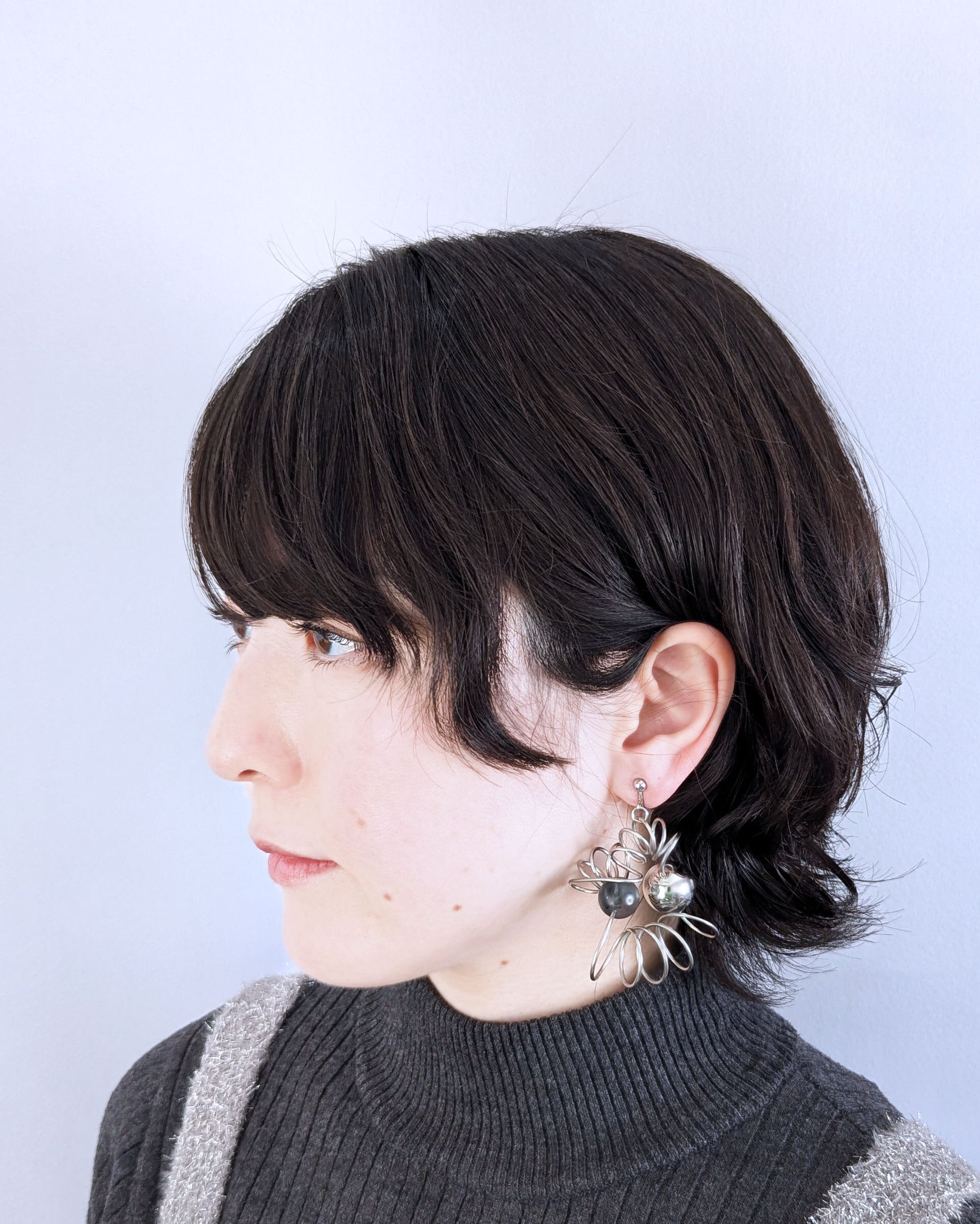 ステンレスワイヤーで作られたシルエットは肌馴染みもよくフォーマルなスタイルにもカジュアルなスタイルにも合わせられる一品となっております。