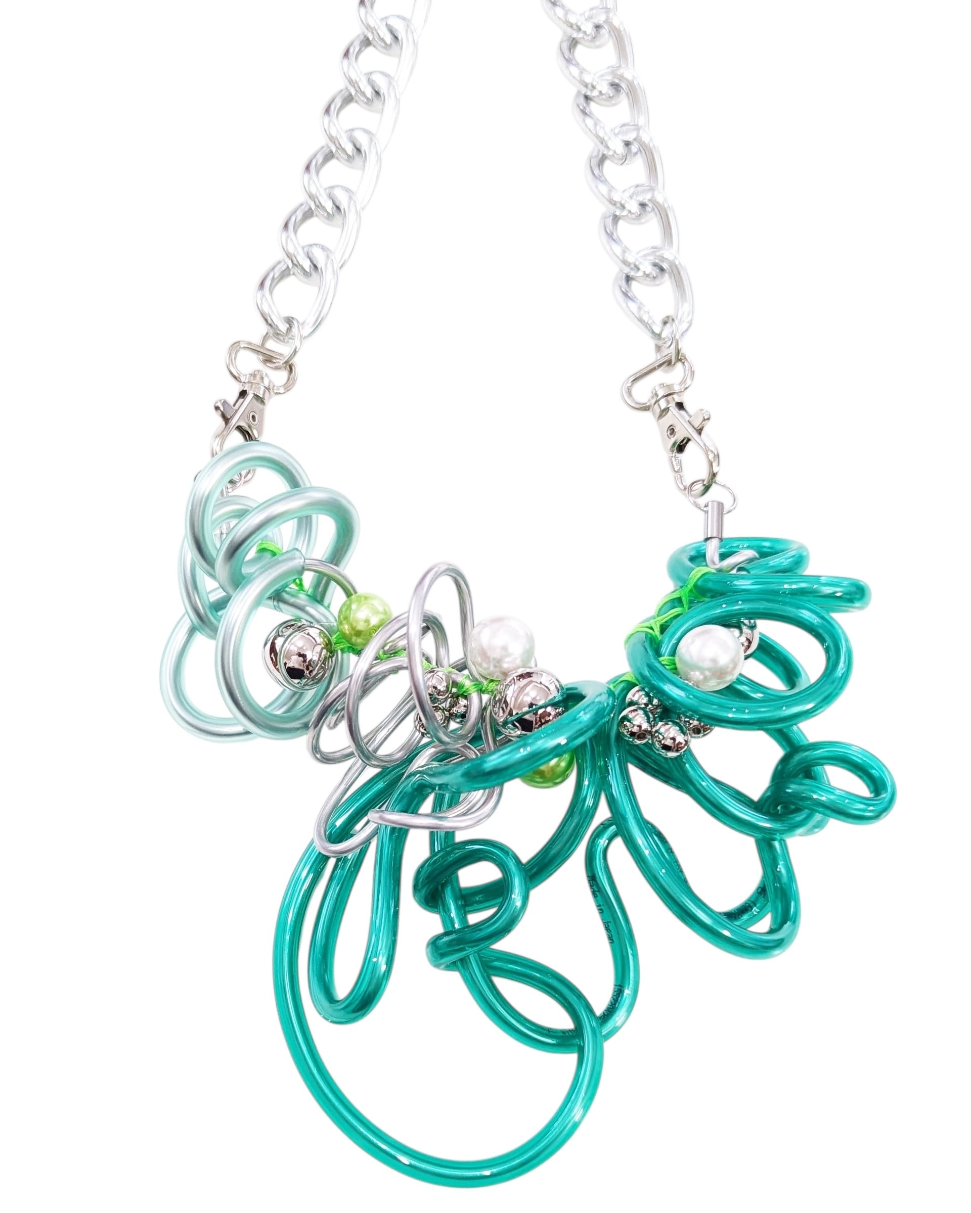 首元のボリュームあるチェーンとビックシルエットのモチーフは唯一無二の存在感、メンズでもレディースでも使える万能アイテムです。