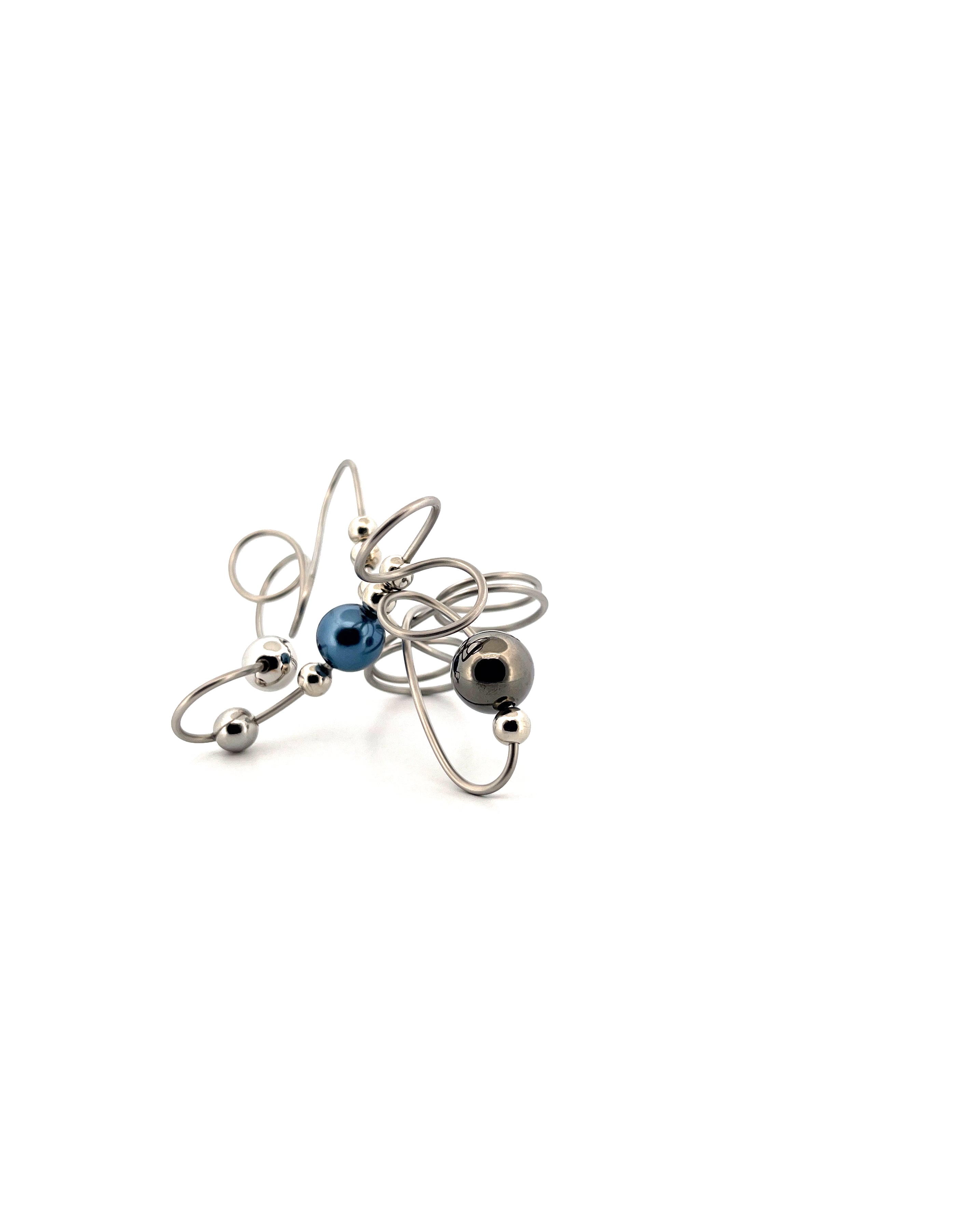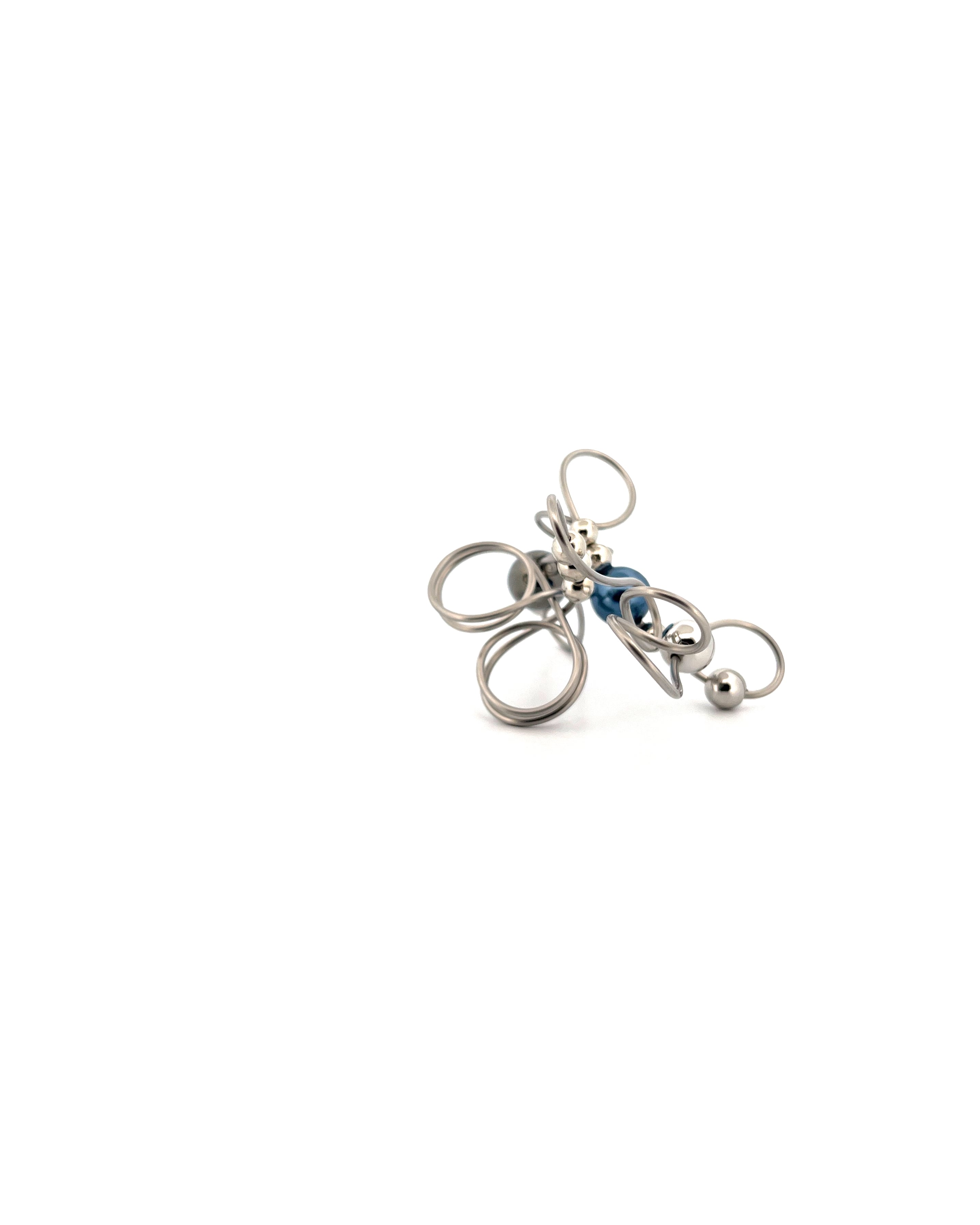 上下にリズミカルに伸びたワイヤーのシルエットがネイビーとブラックの渋いカラーリングを軽やかに見せてくれている遊び心溢れるデザインになります。