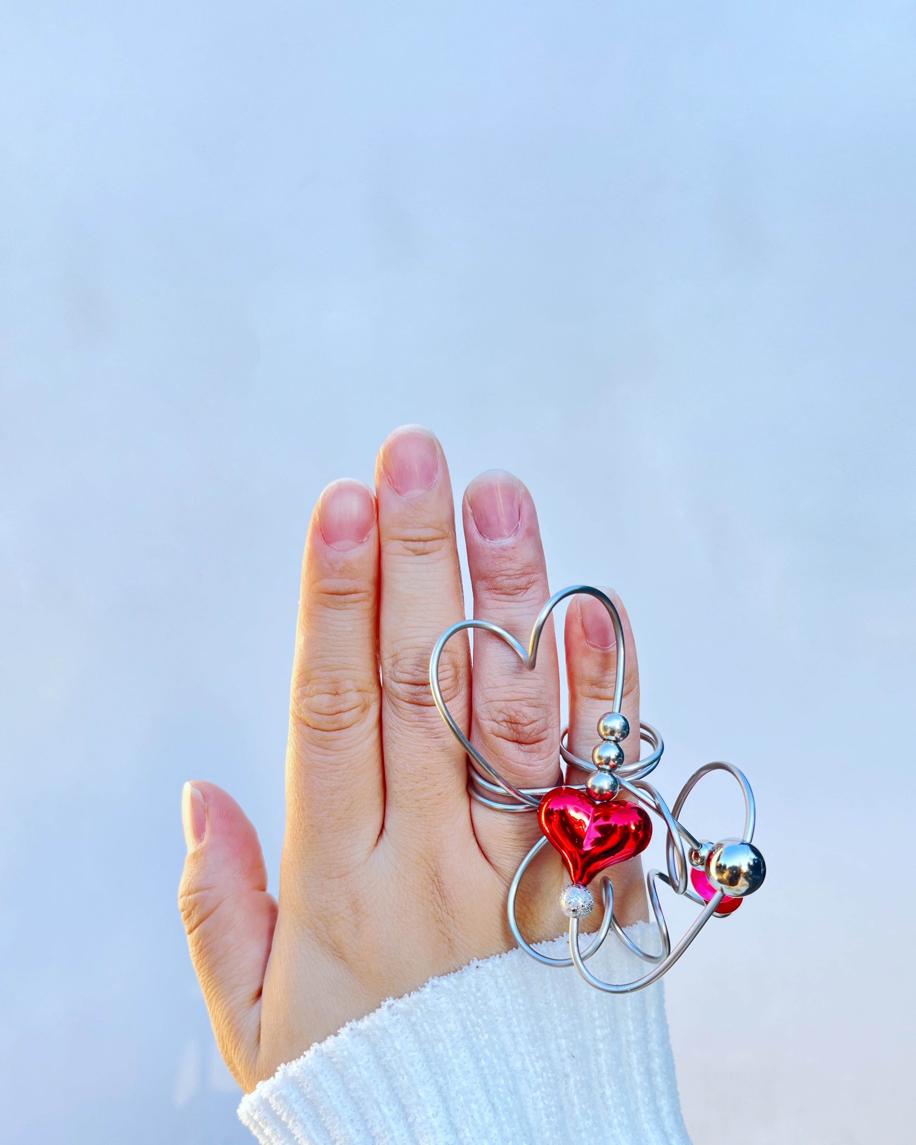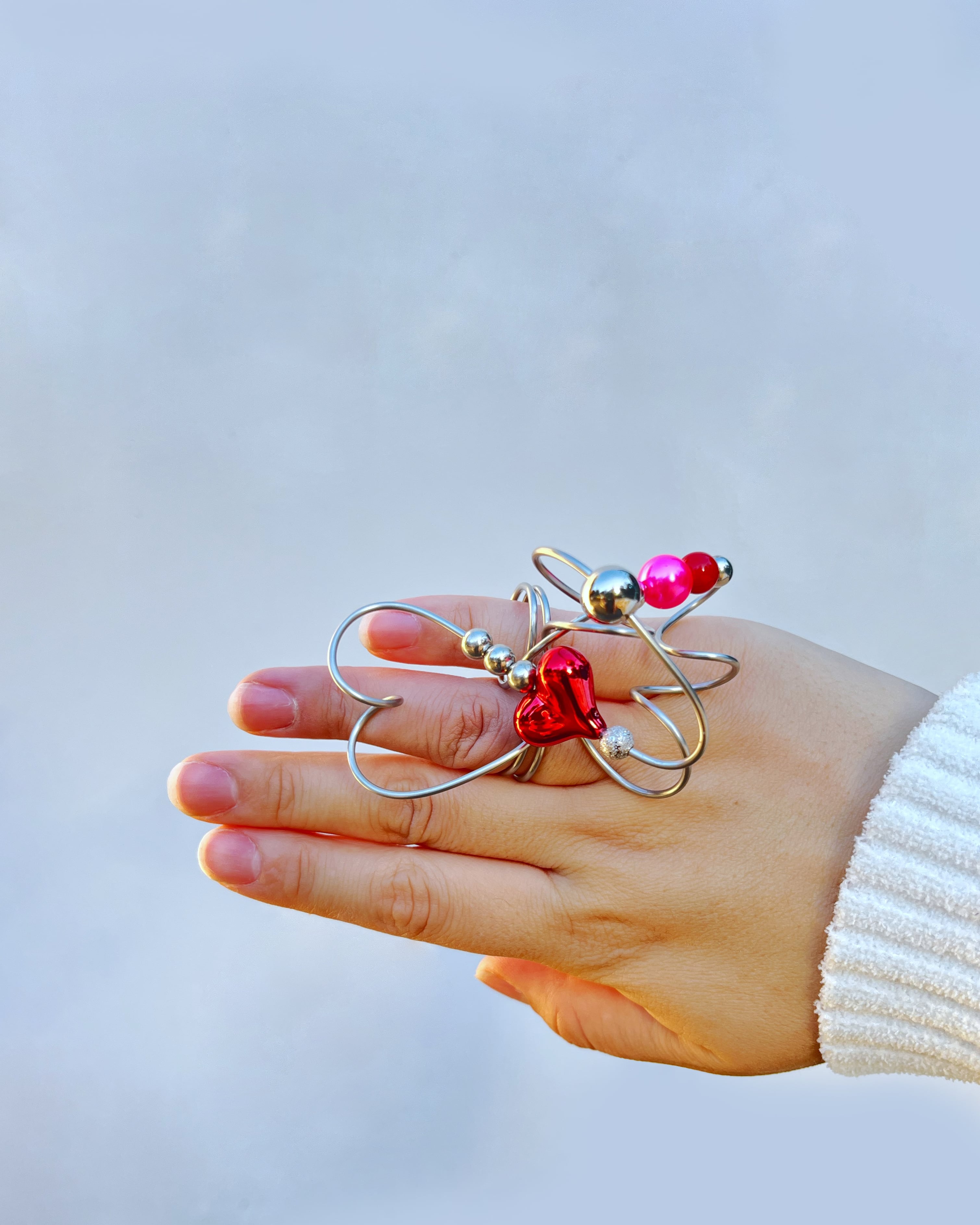 ハートのシルエットになるように形作られたデザインが特徴キラッと輝く真っ赤なハートビーズがラブリーでたまりません。推し活やイベントなどでも活躍するかわいいアイテムです。