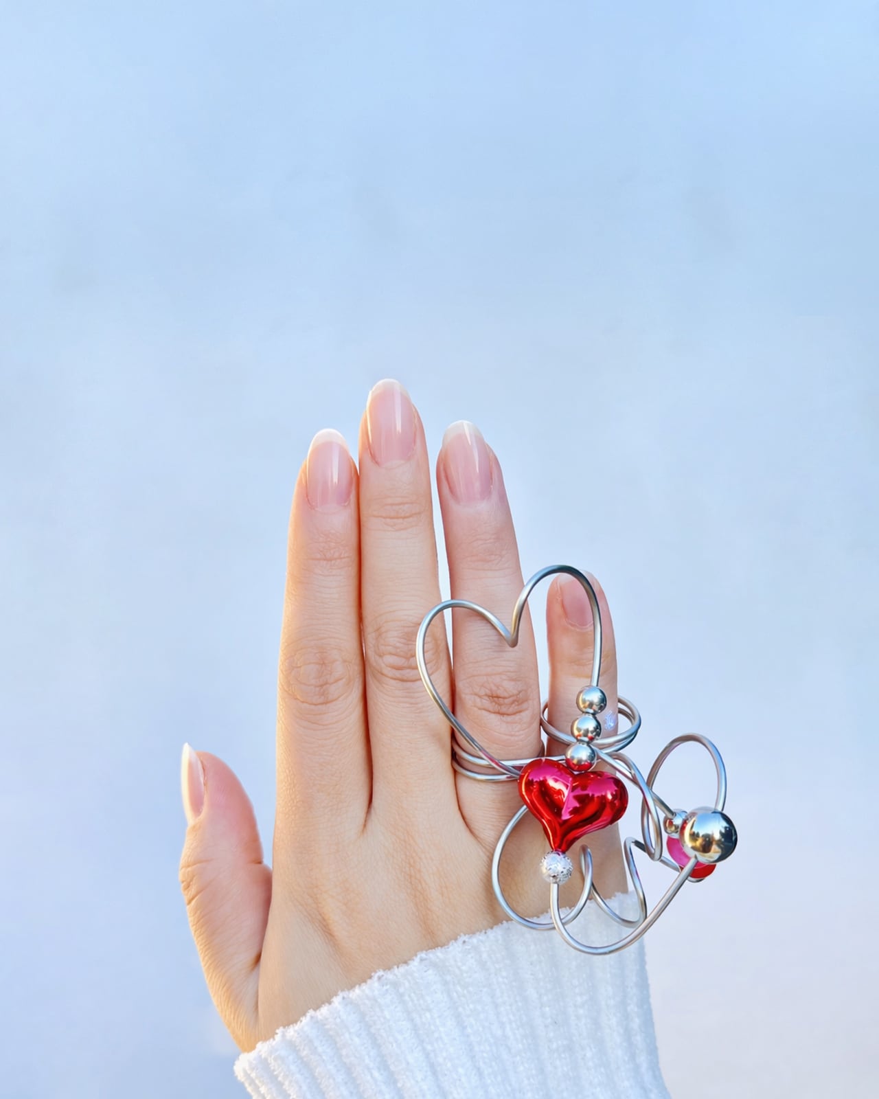 立体的でありながら、指にのせると空間が抜けるような軽さがあります。