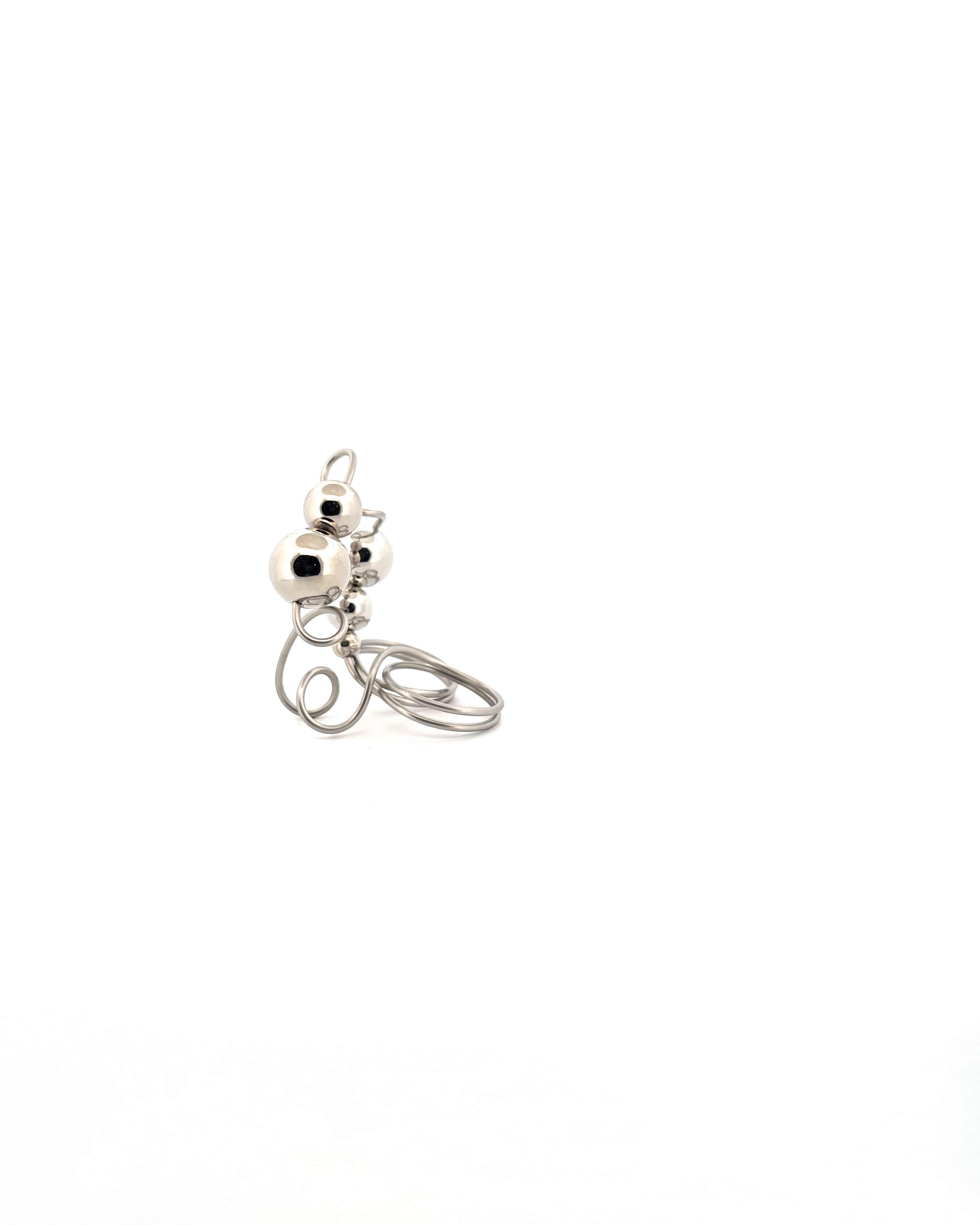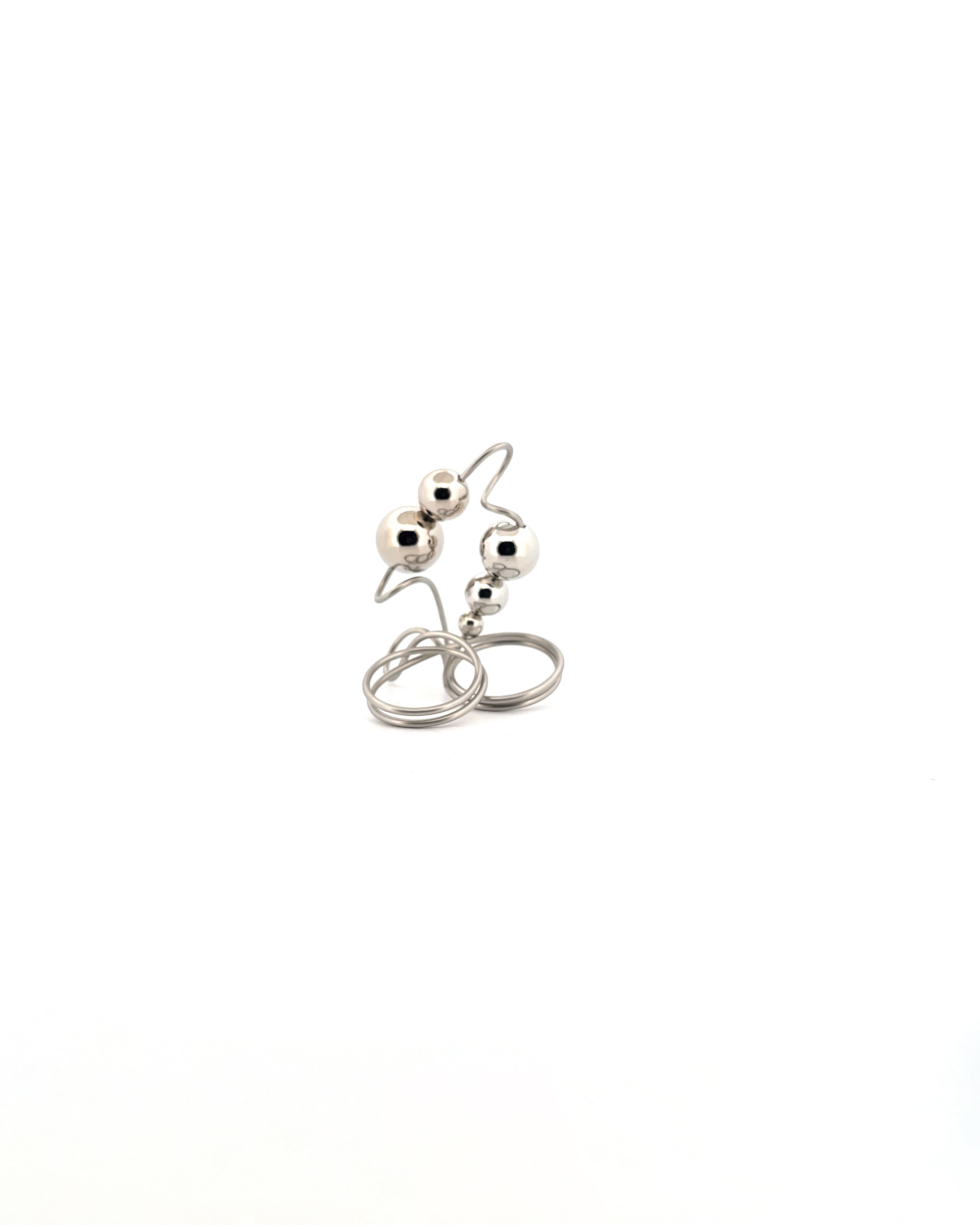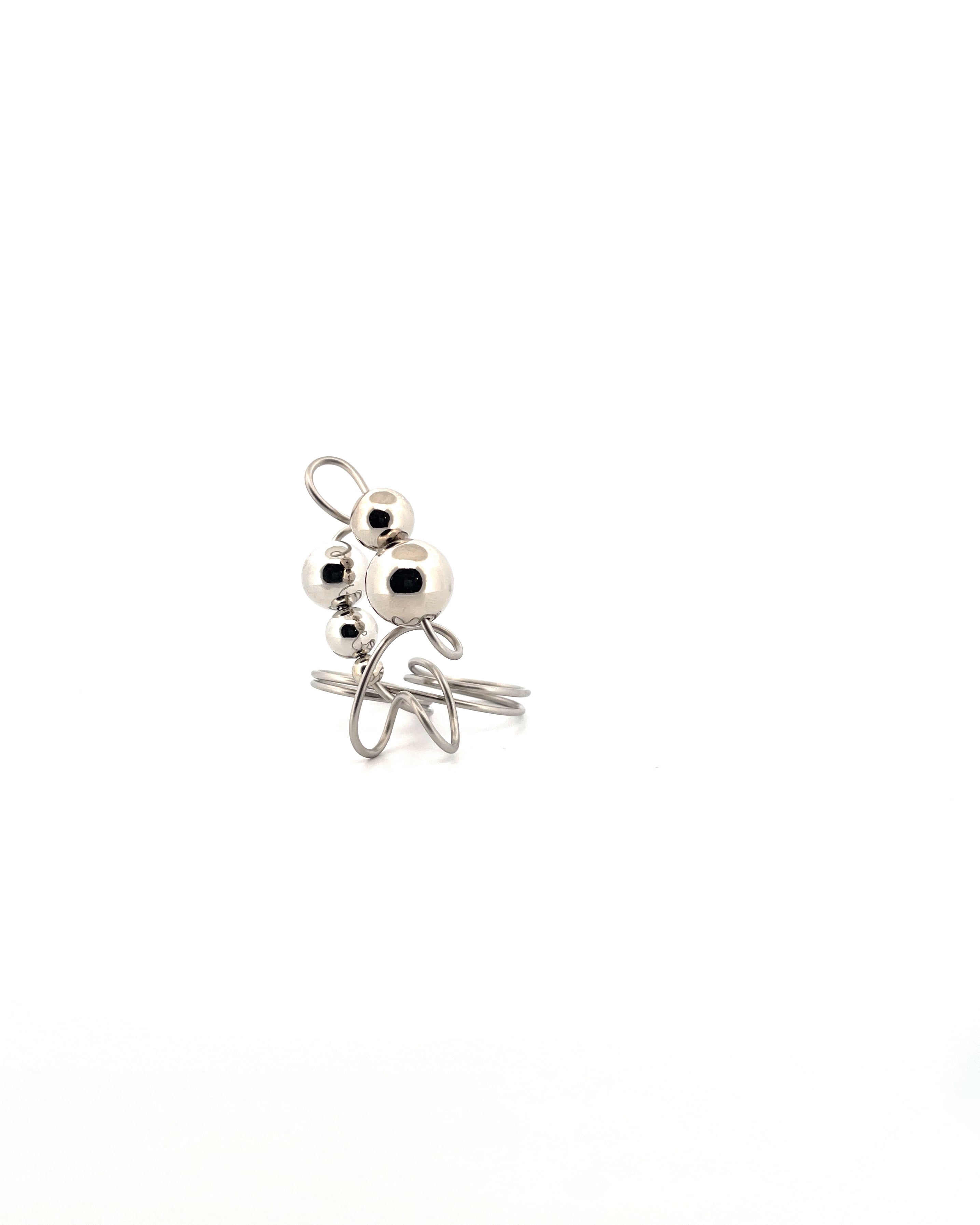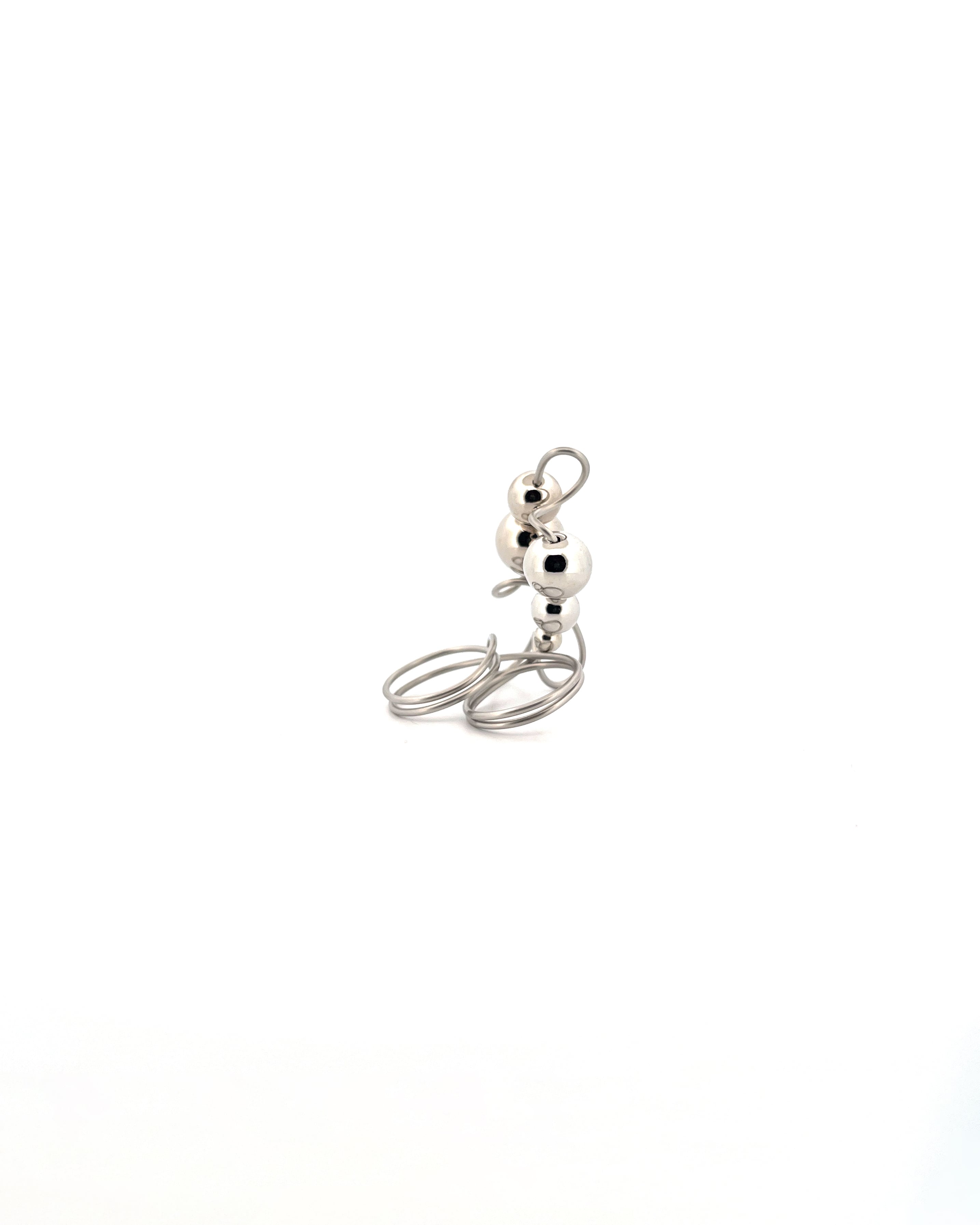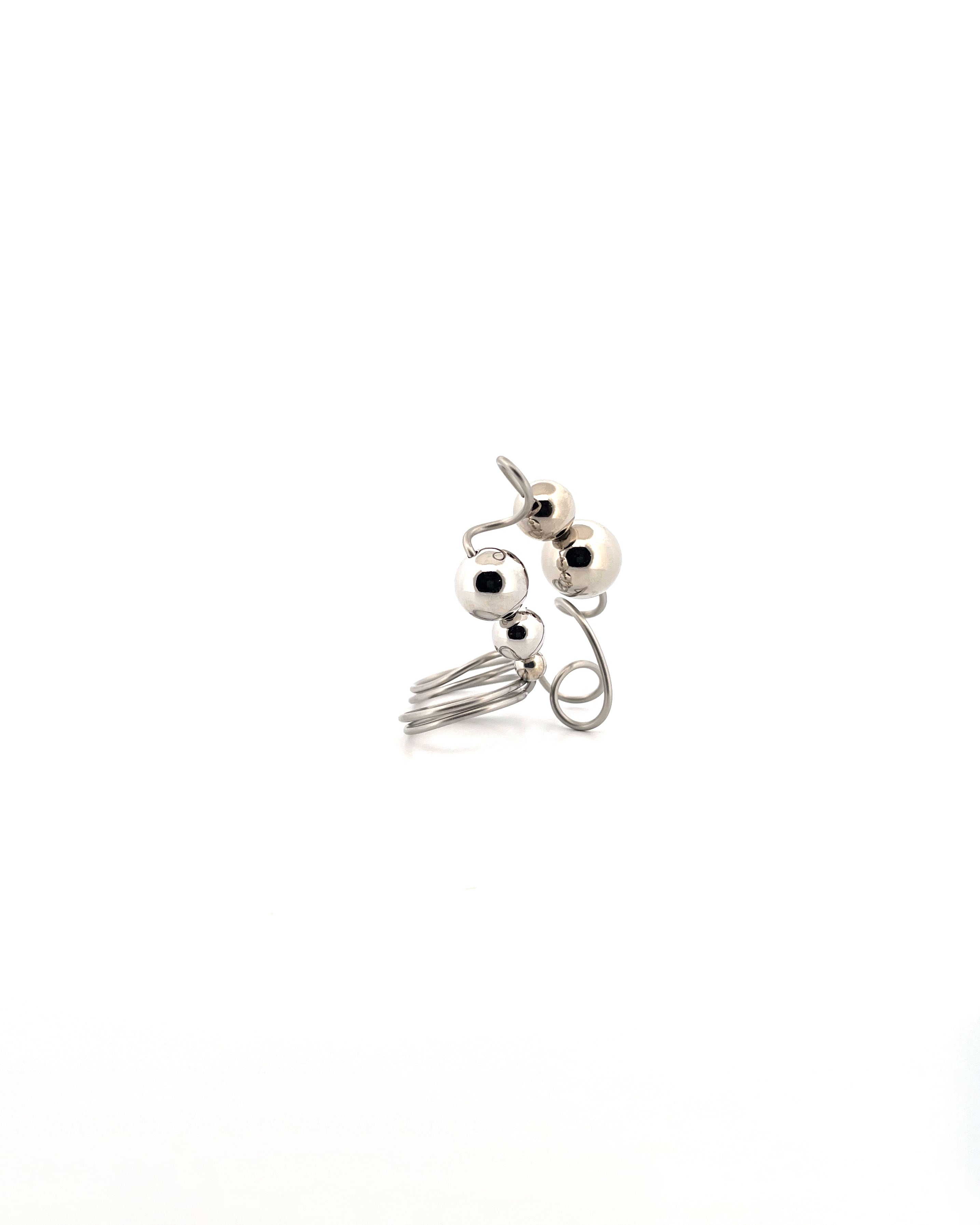 大きめのシルバービーズがアイデンティティとなっている重厚感のあるデザイン。縦型のシルエットはモードなスタイルに合わせやすくなっています。