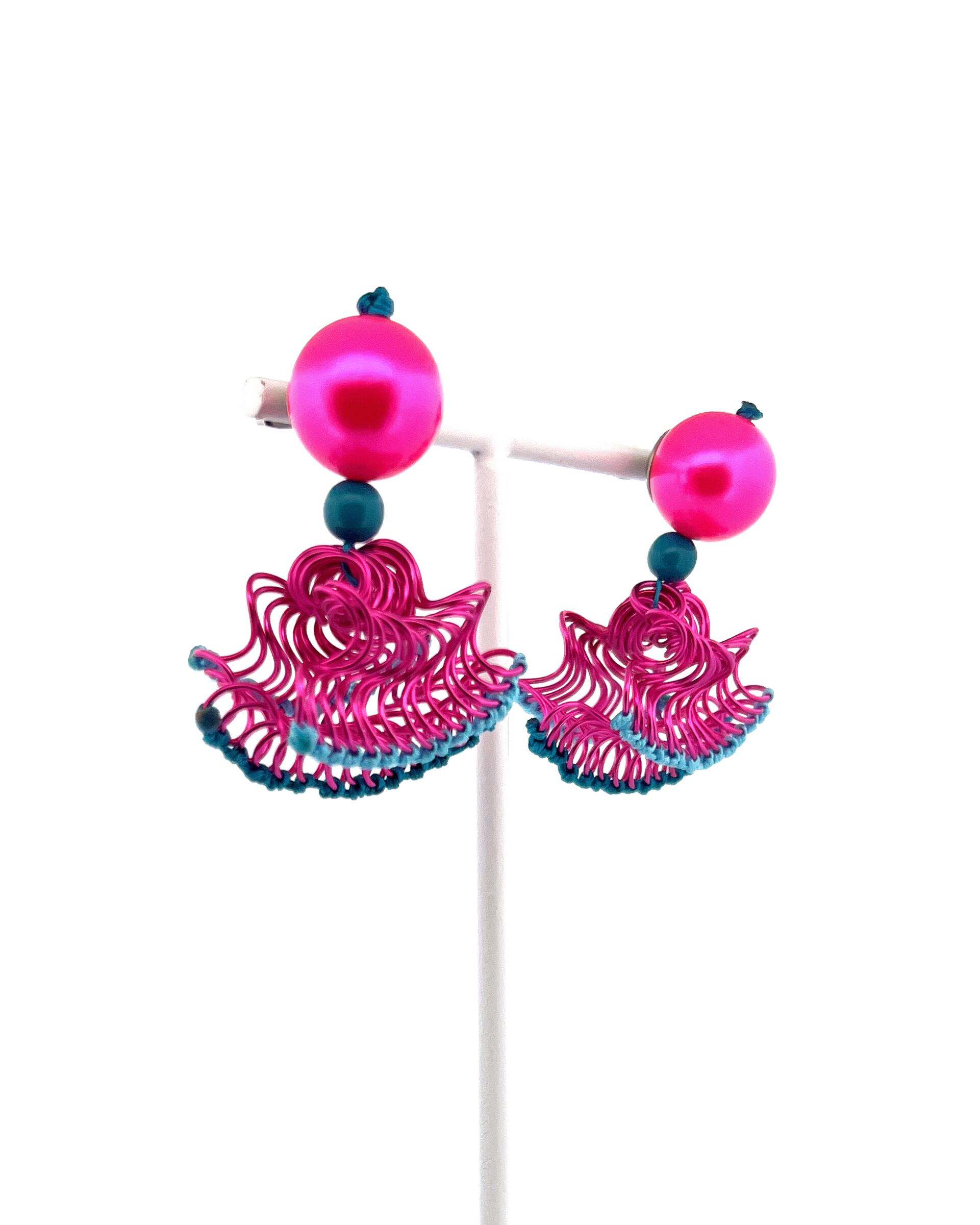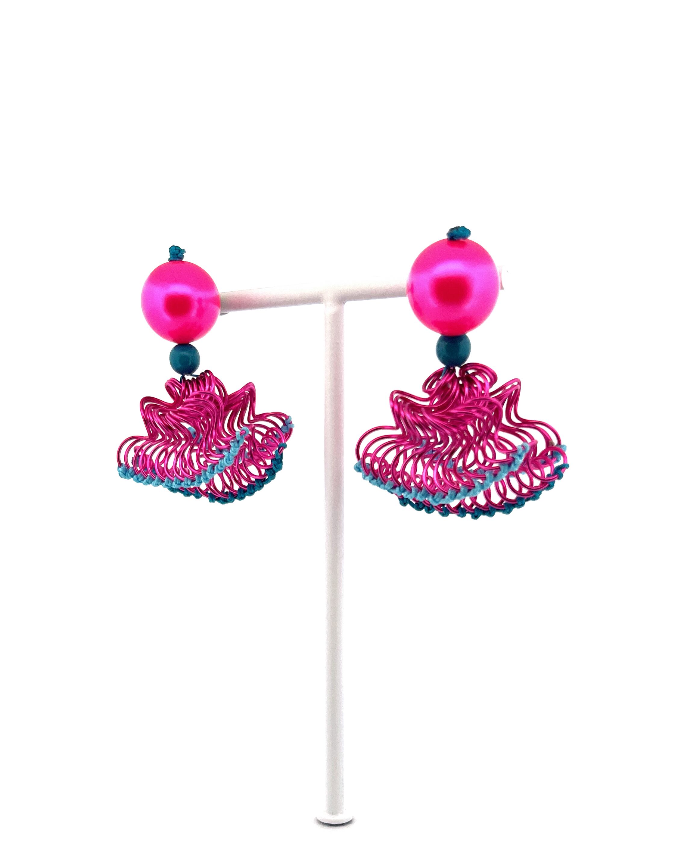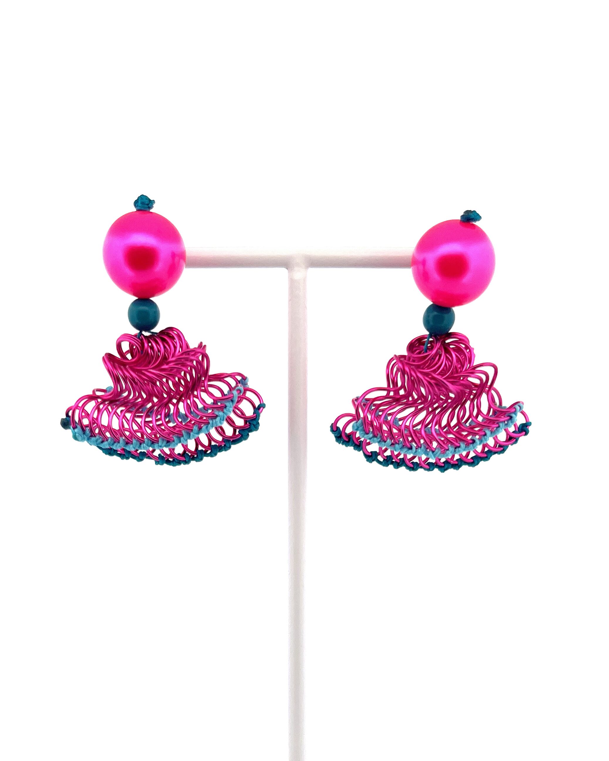 フリルの持つ軽やかさをワイヤーを形作り、糸で編むことで表現した作品です。