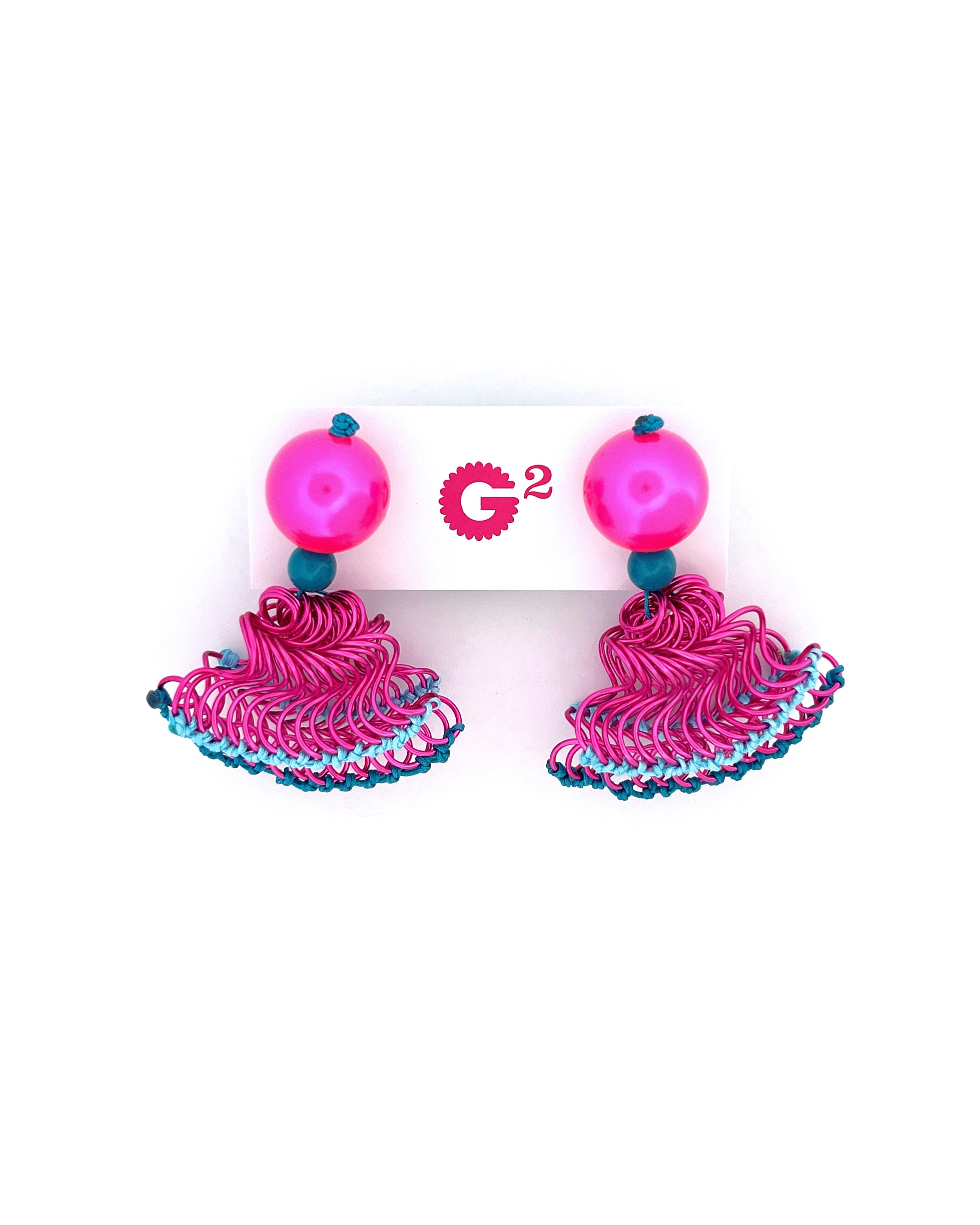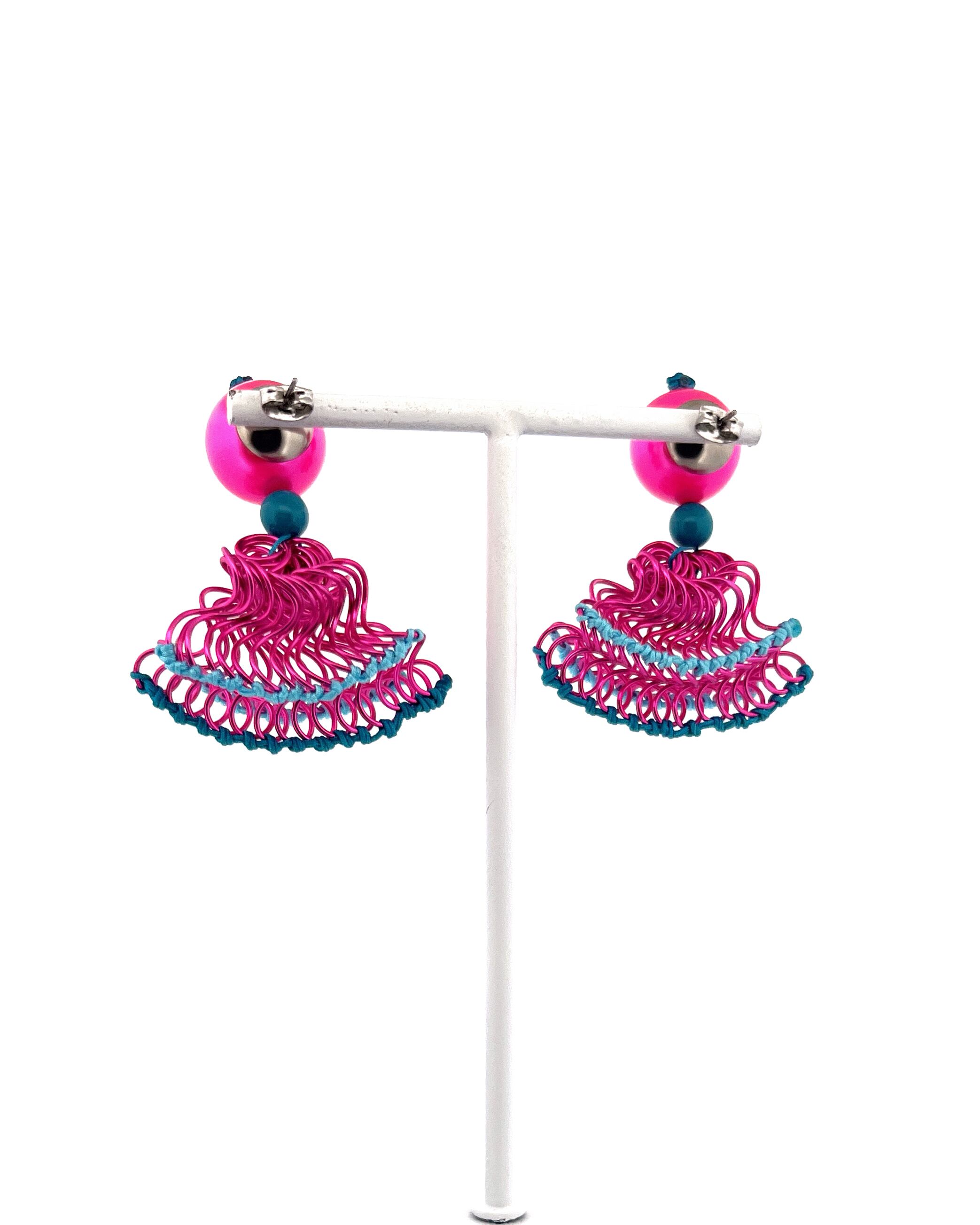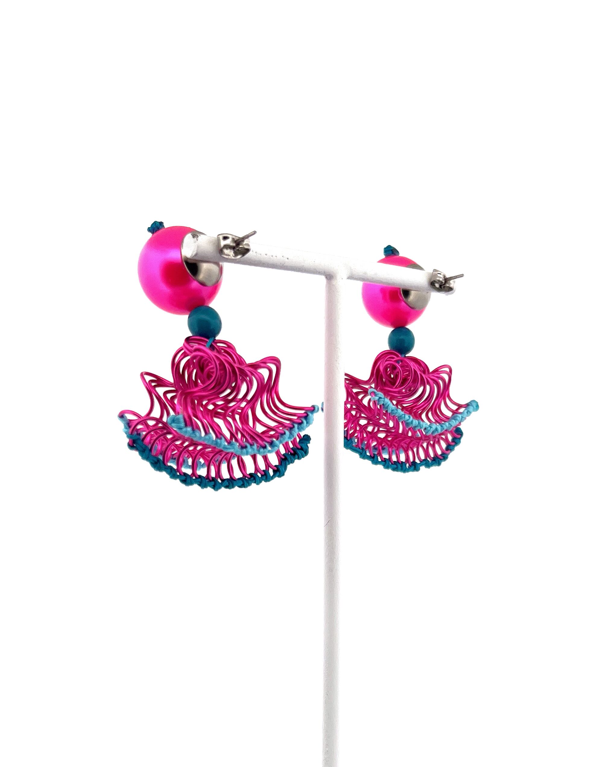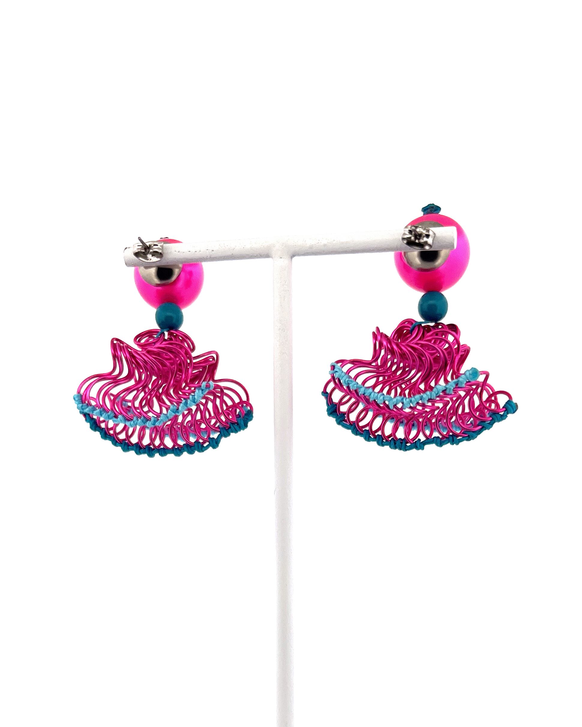 フリルの持つ軽やかさをワイヤーを形作り、糸で編むことで表現した作品です。