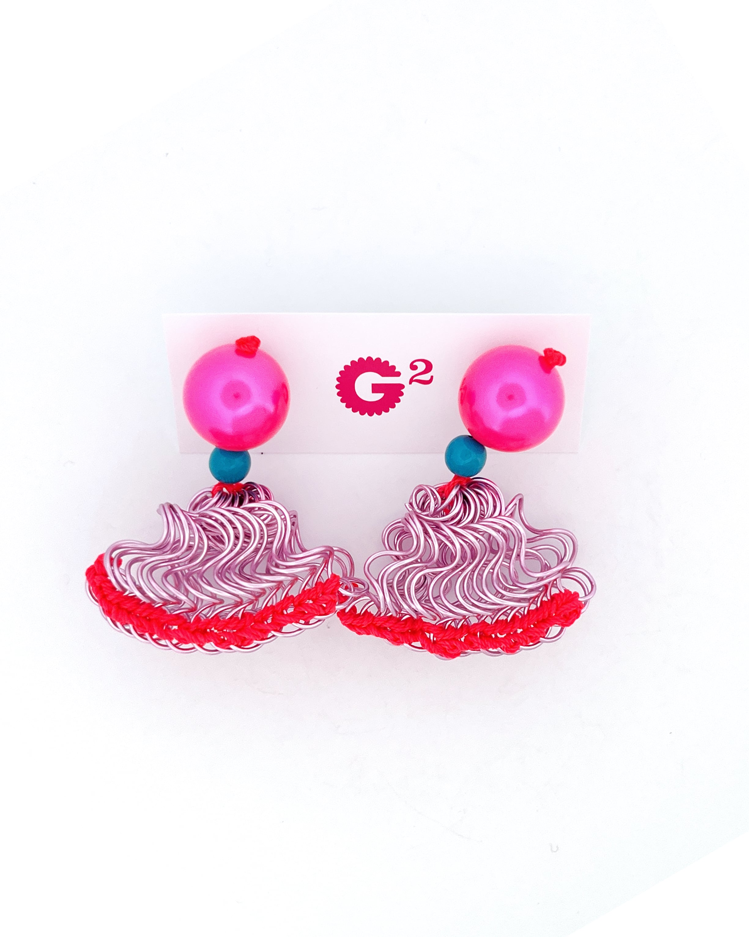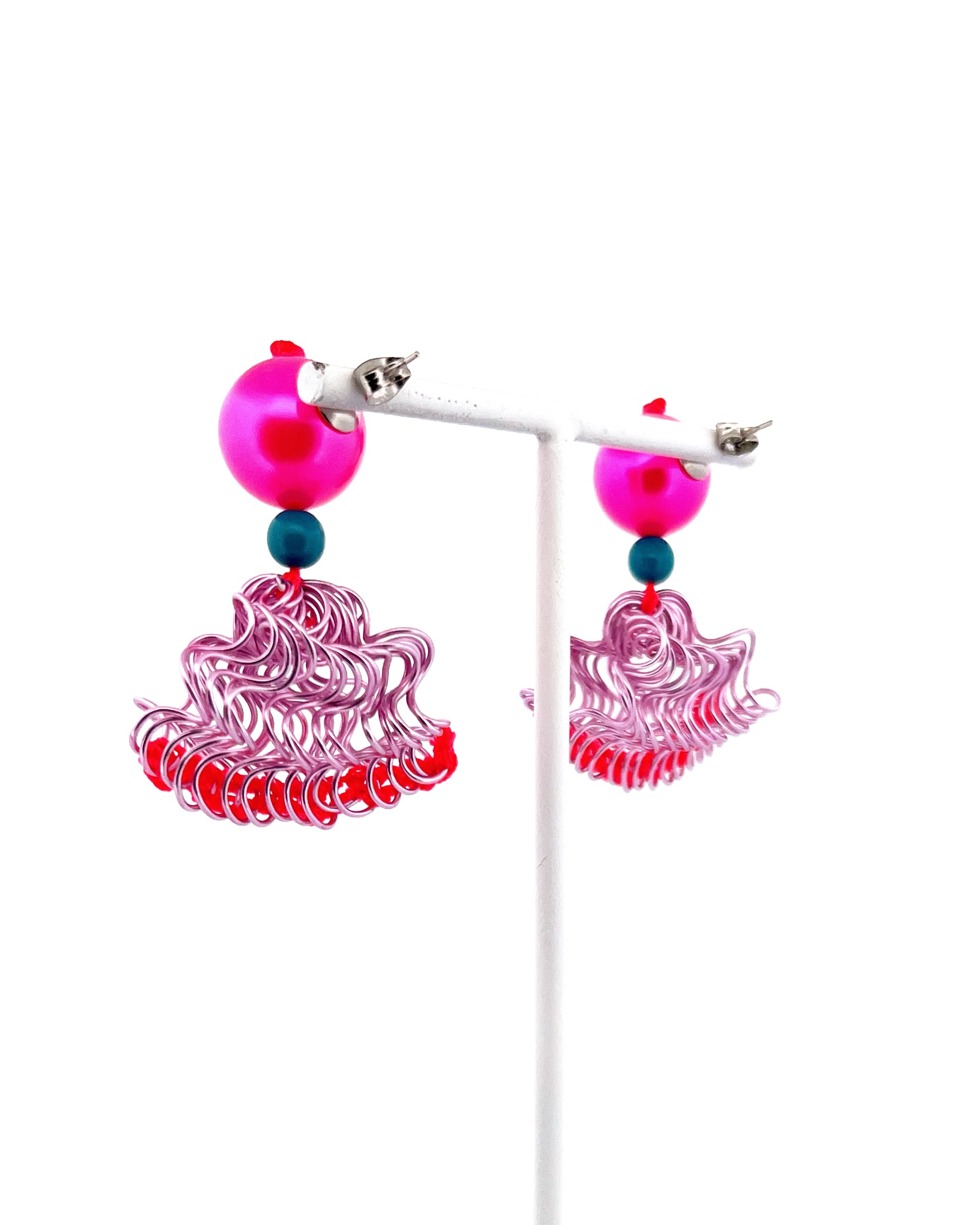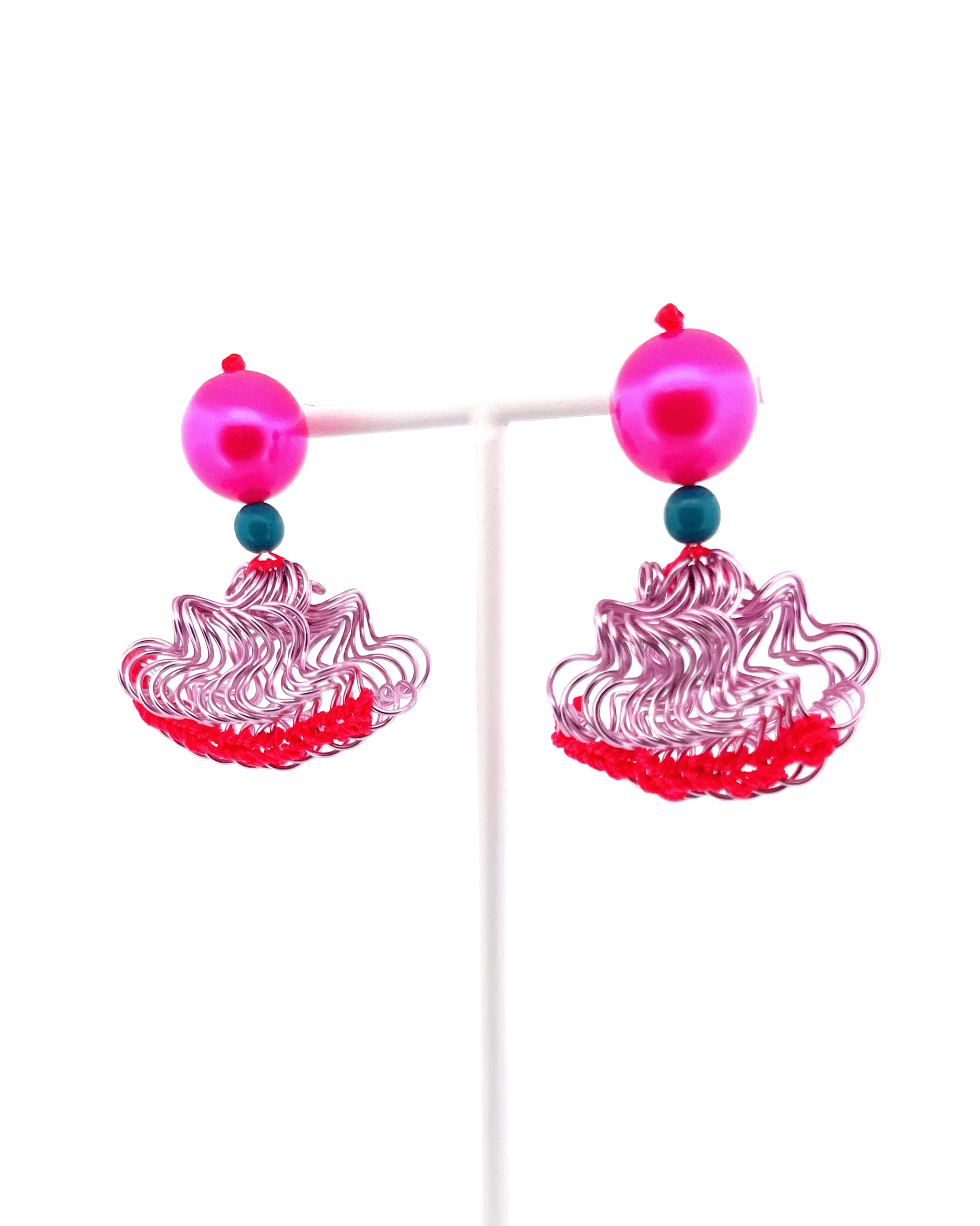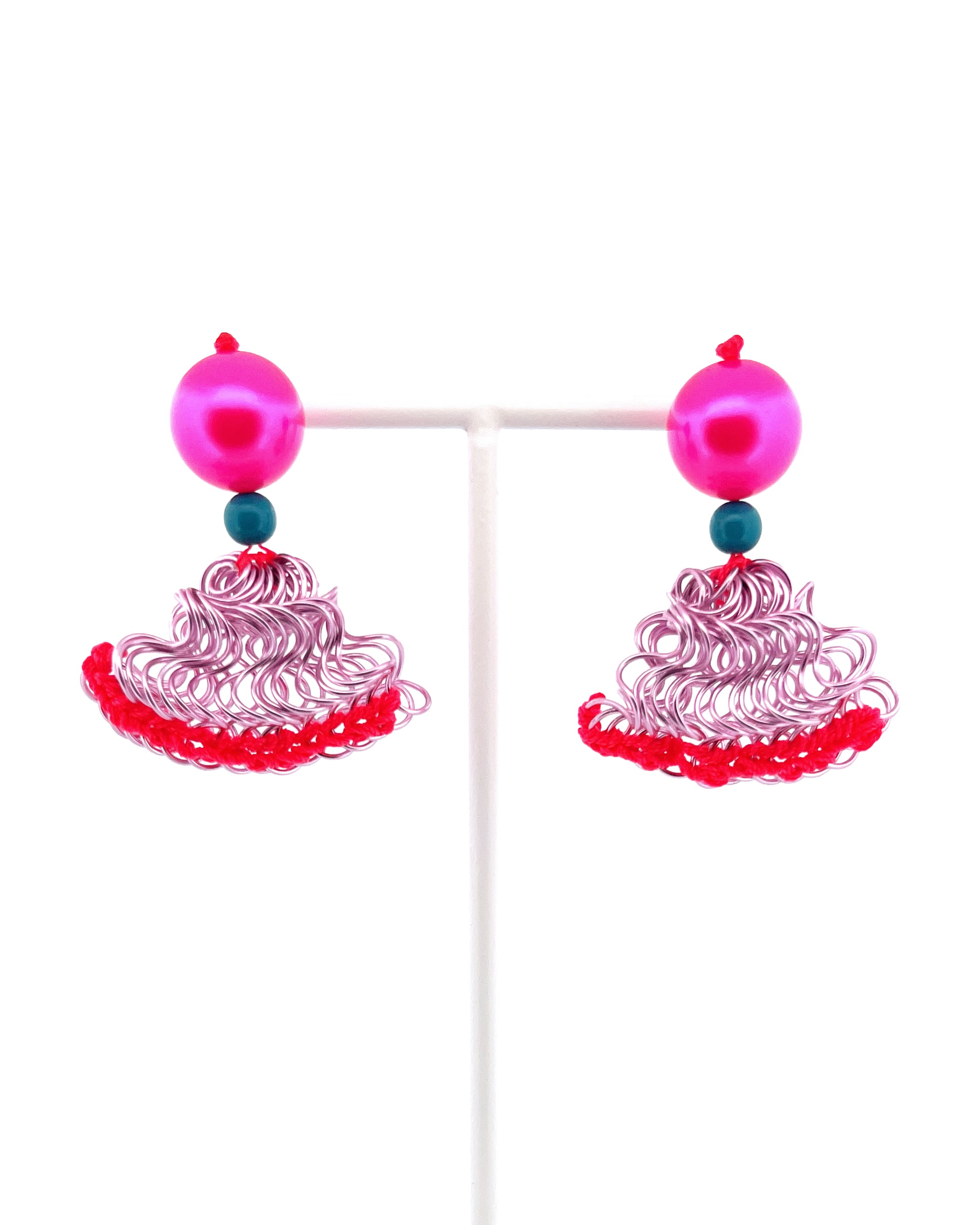 フリルの持つ軽やかさをワイヤーを形作り、糸で編むことで表現した作品です。