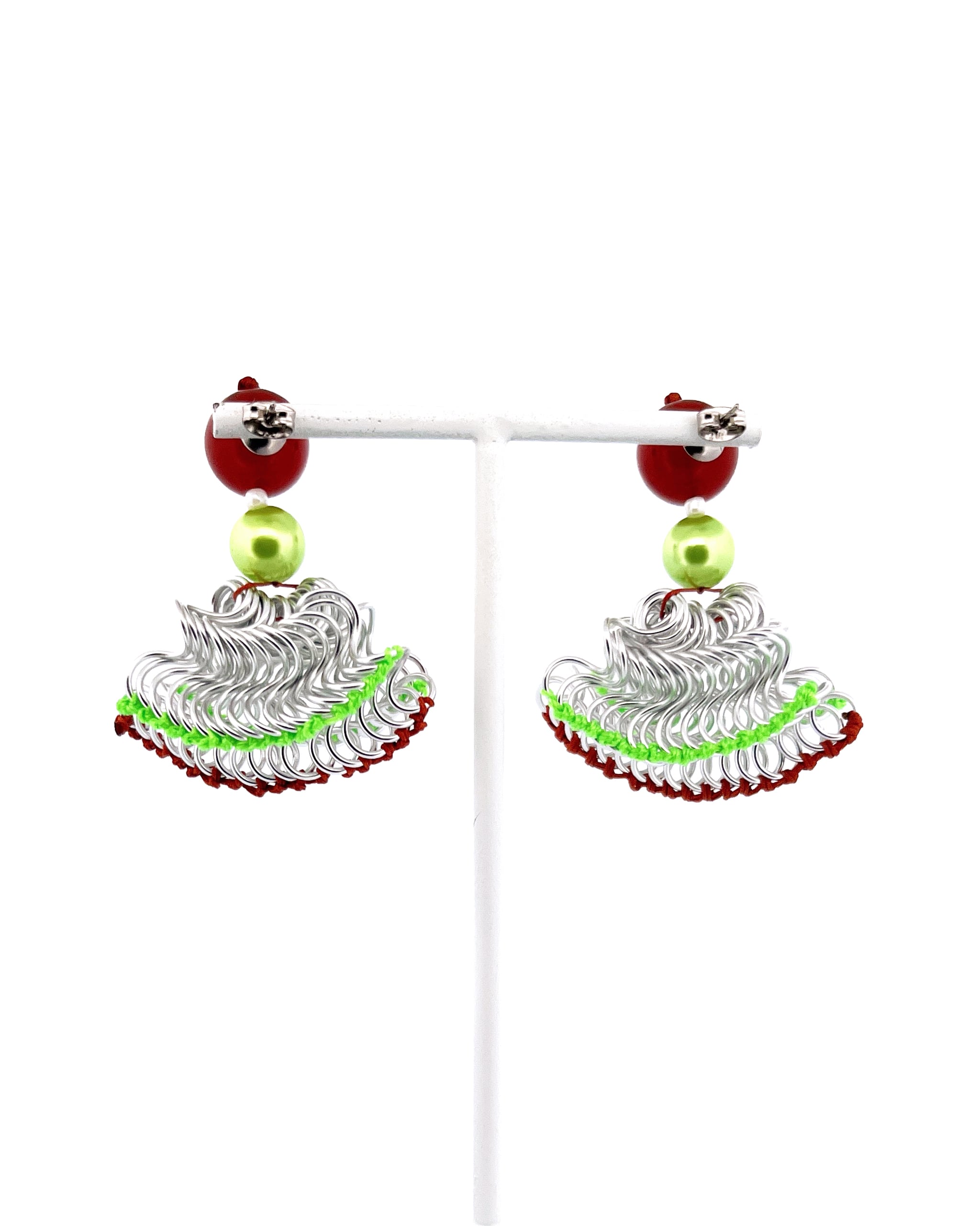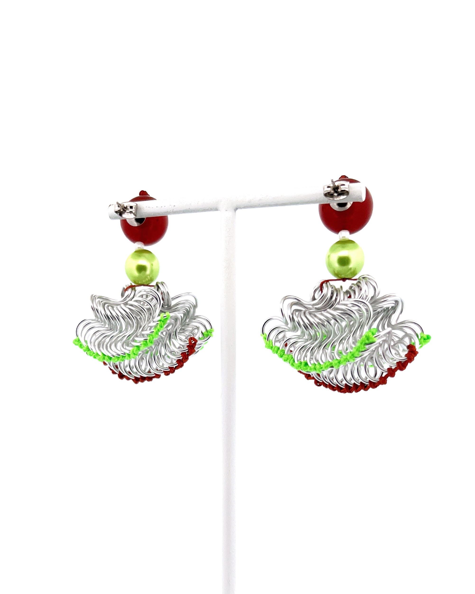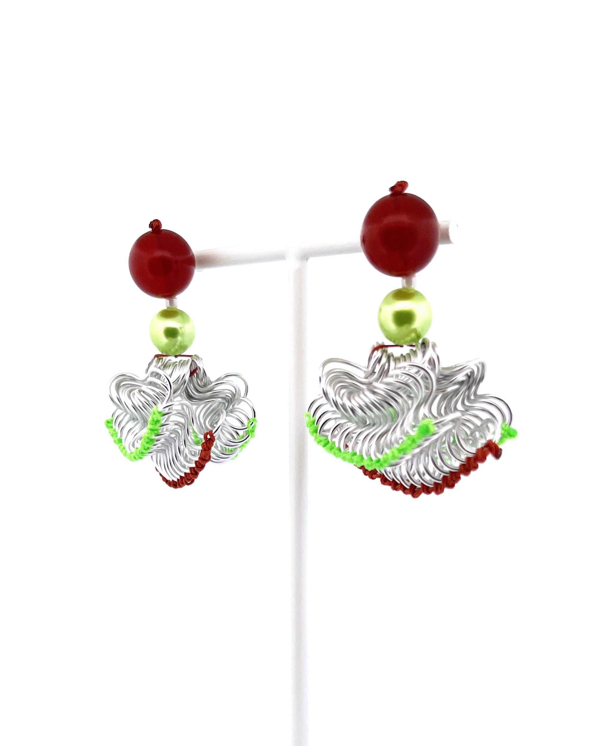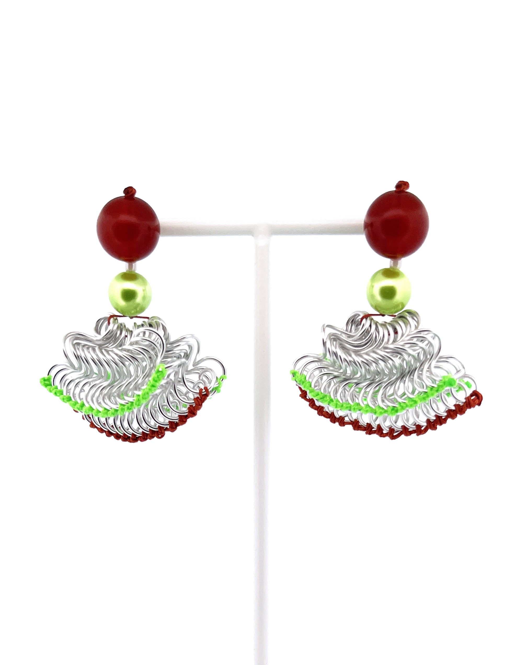 フリルの持つ軽やかさをワイヤーを形作り、糸で編むことで表現した作品です。