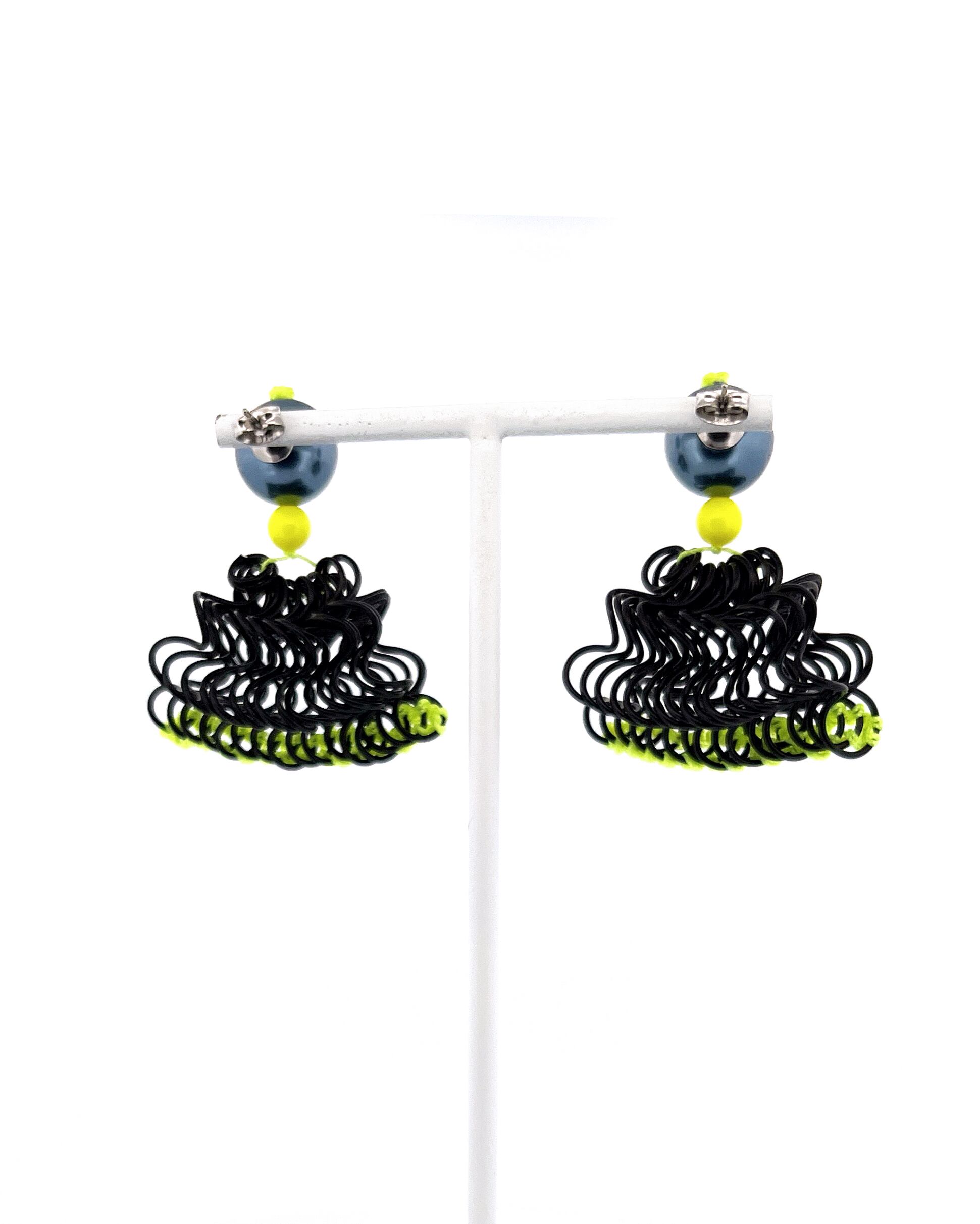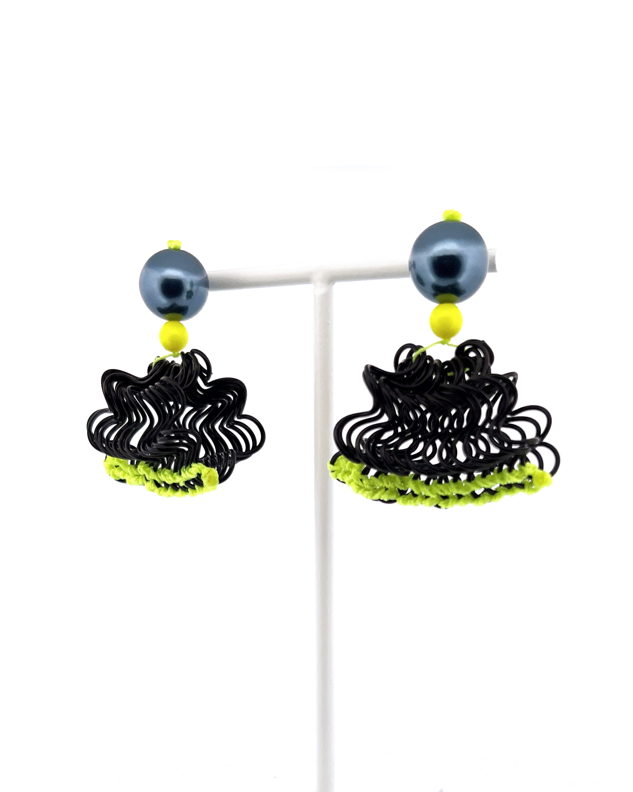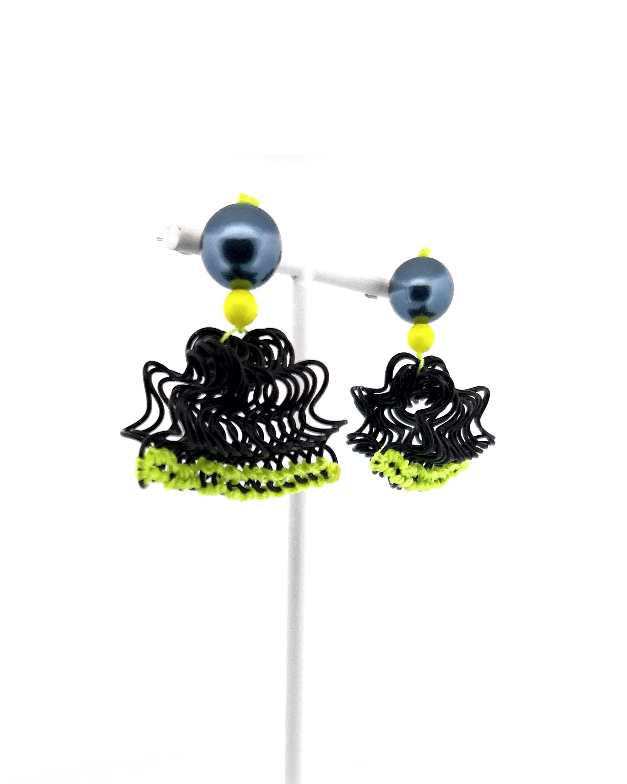 フリルの持つ軽やかさをワイヤーを形作り、糸で編むことで表現した作品です。