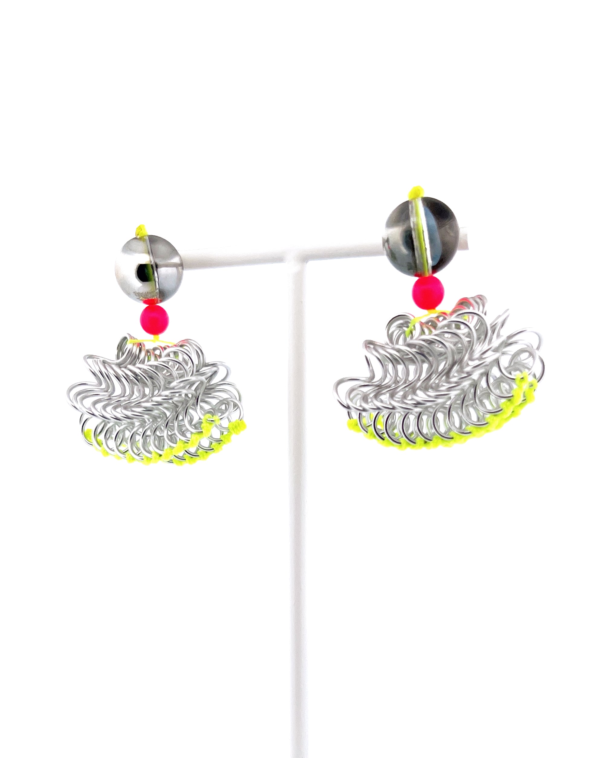 フリルの持つ軽やかさをワイヤーを形作り、糸で編むことで表現した作品です。