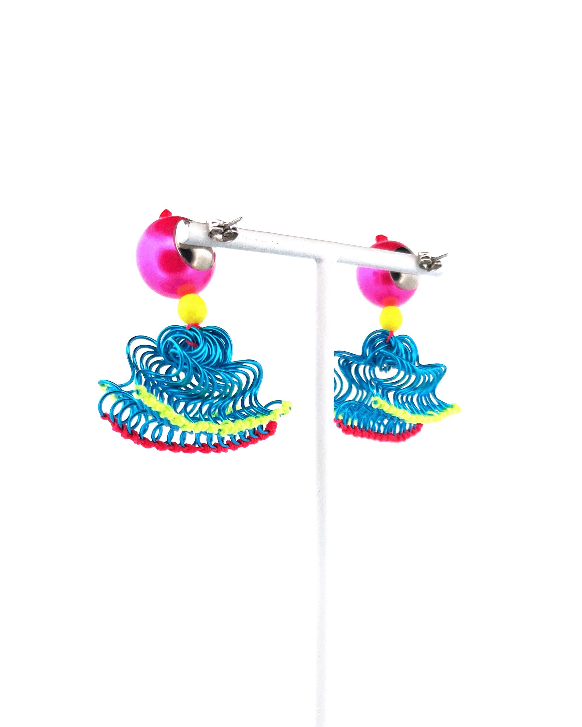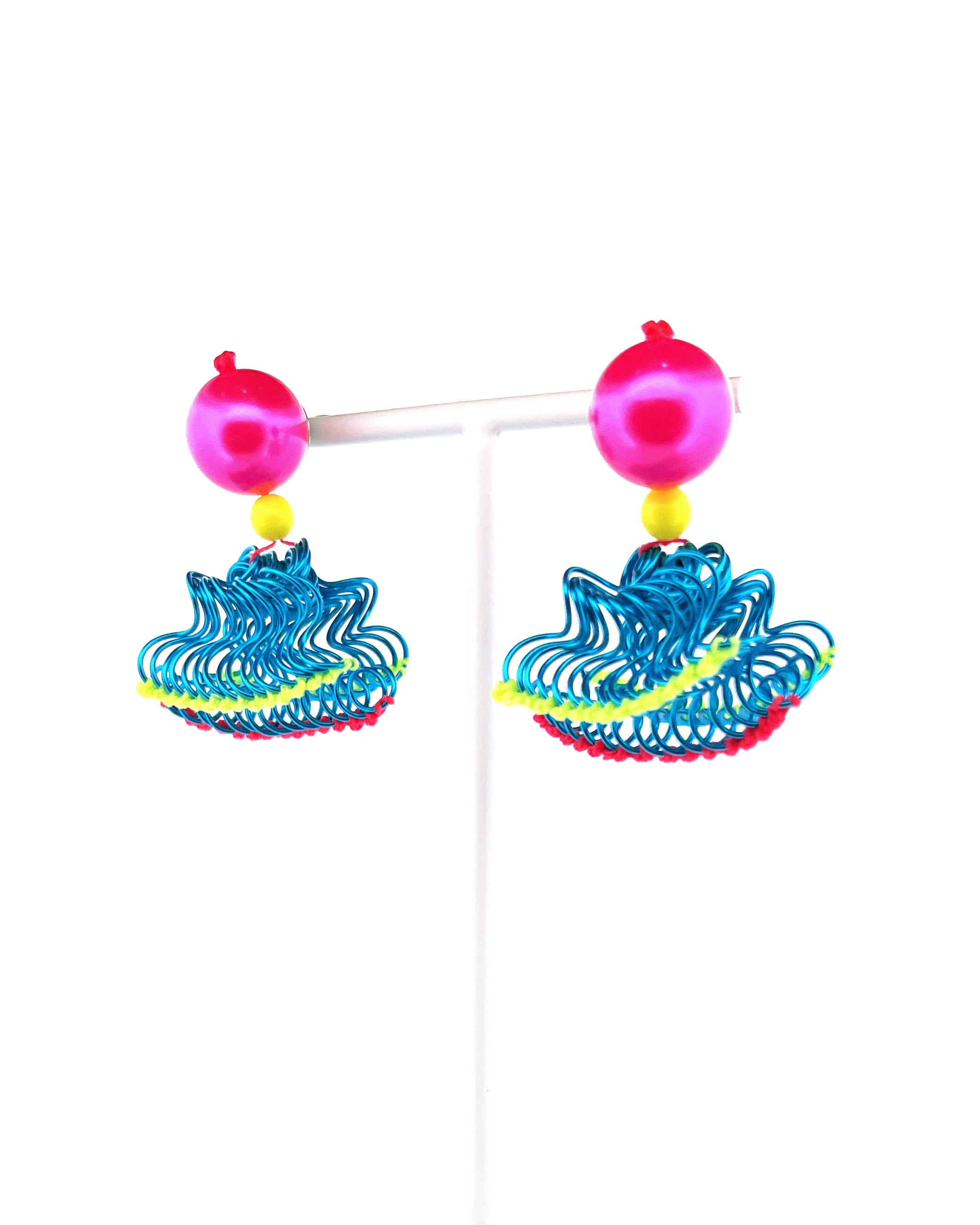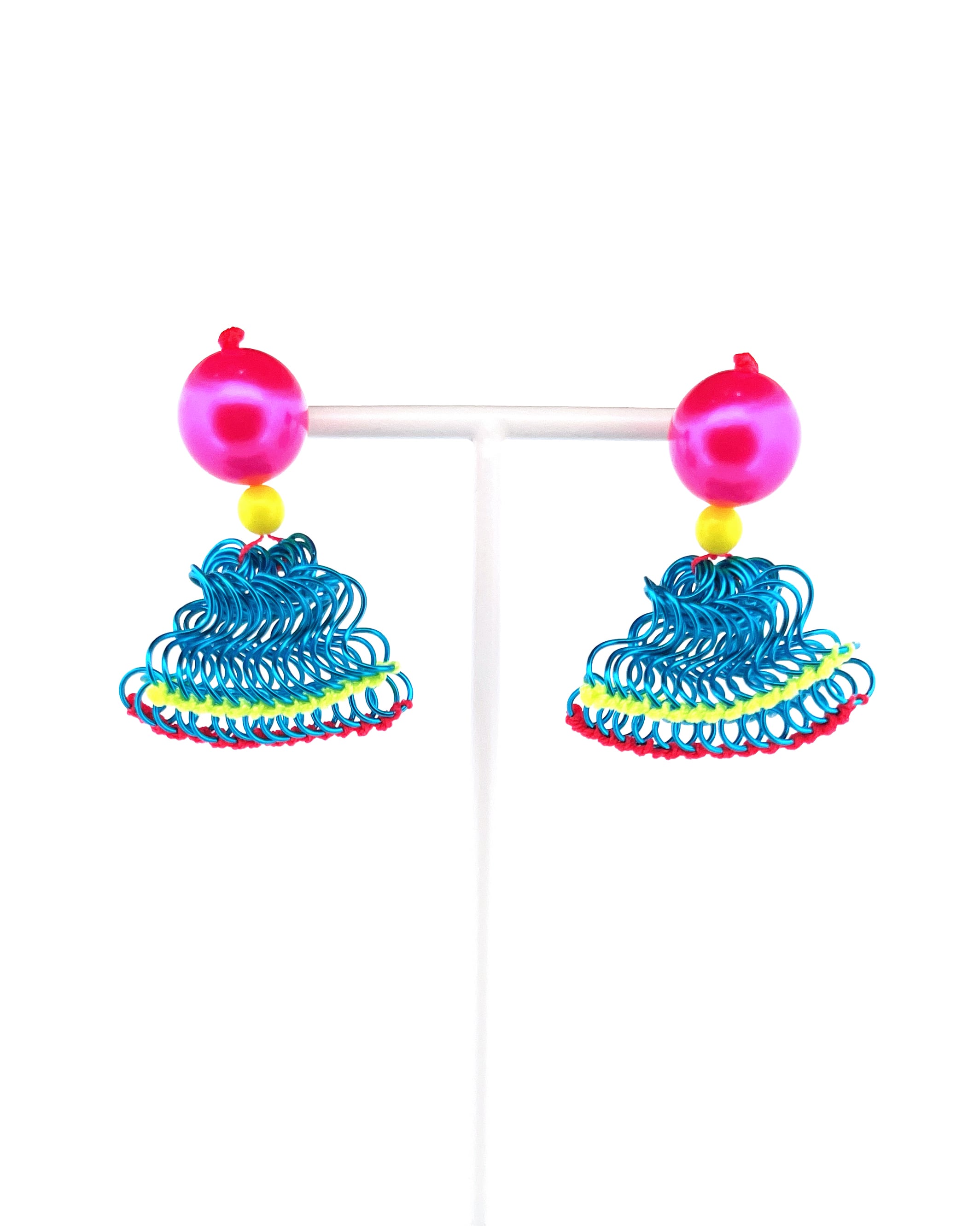 フリルの持つ軽やかさをワイヤーを形作り、糸で編むことで表現した作品です。