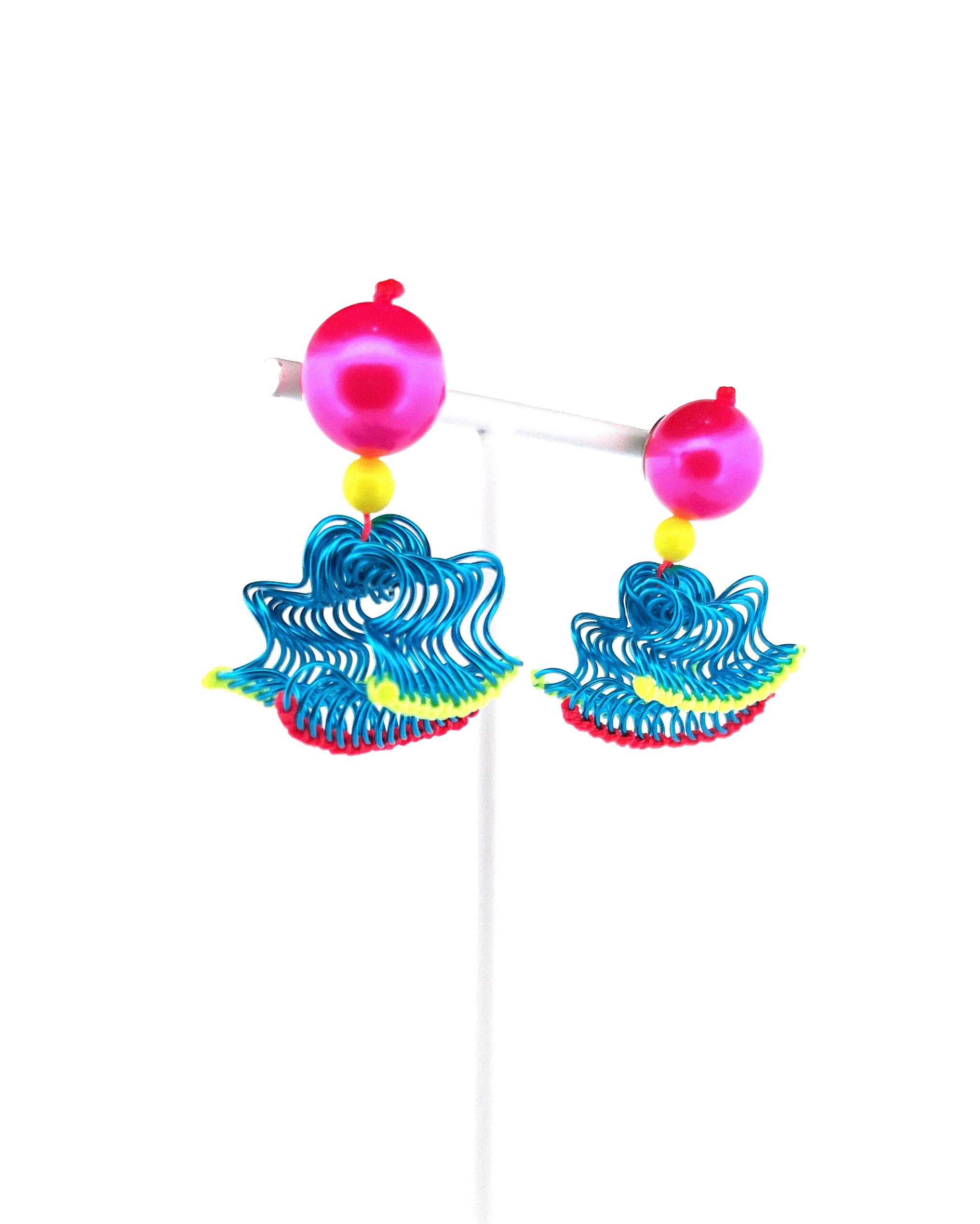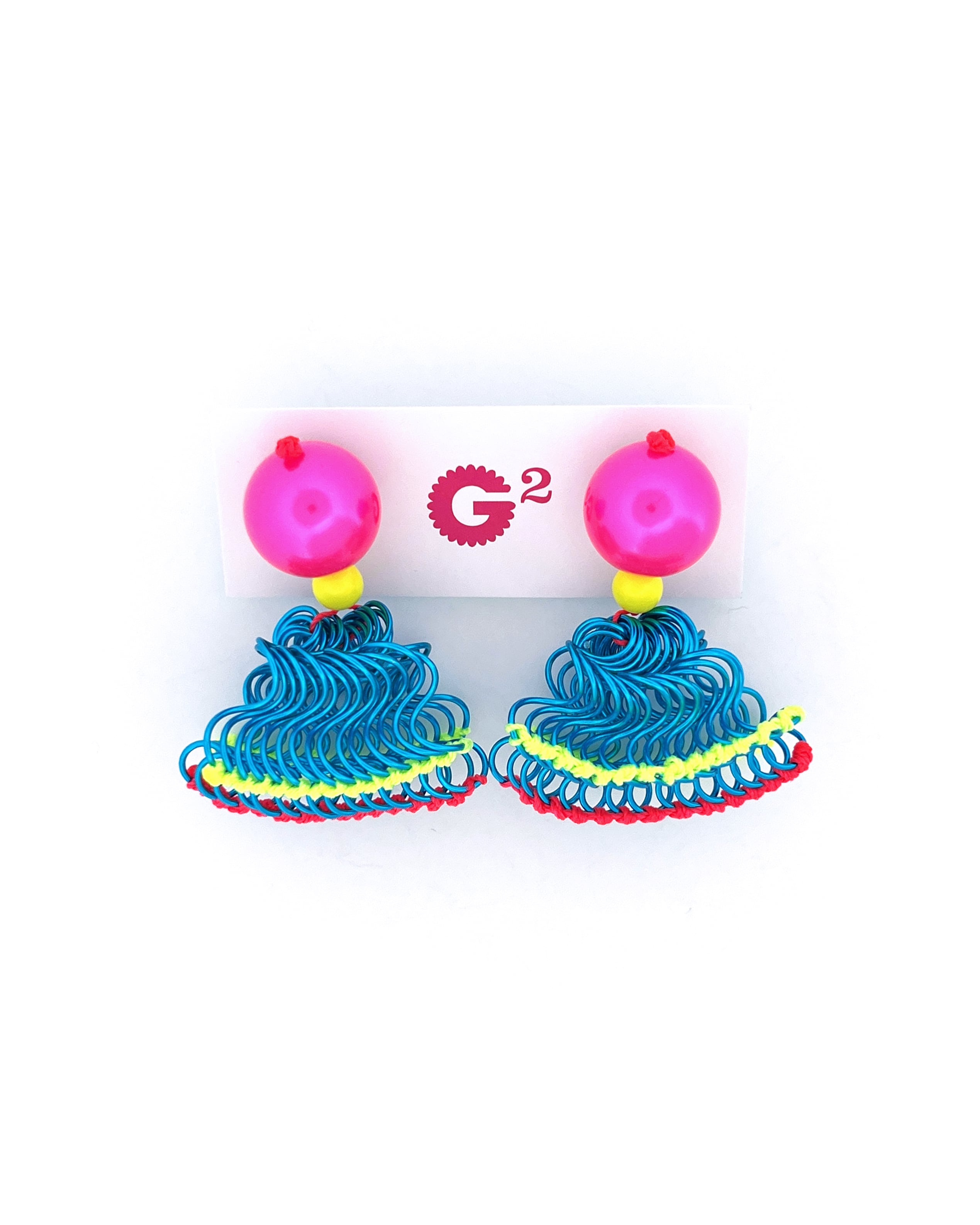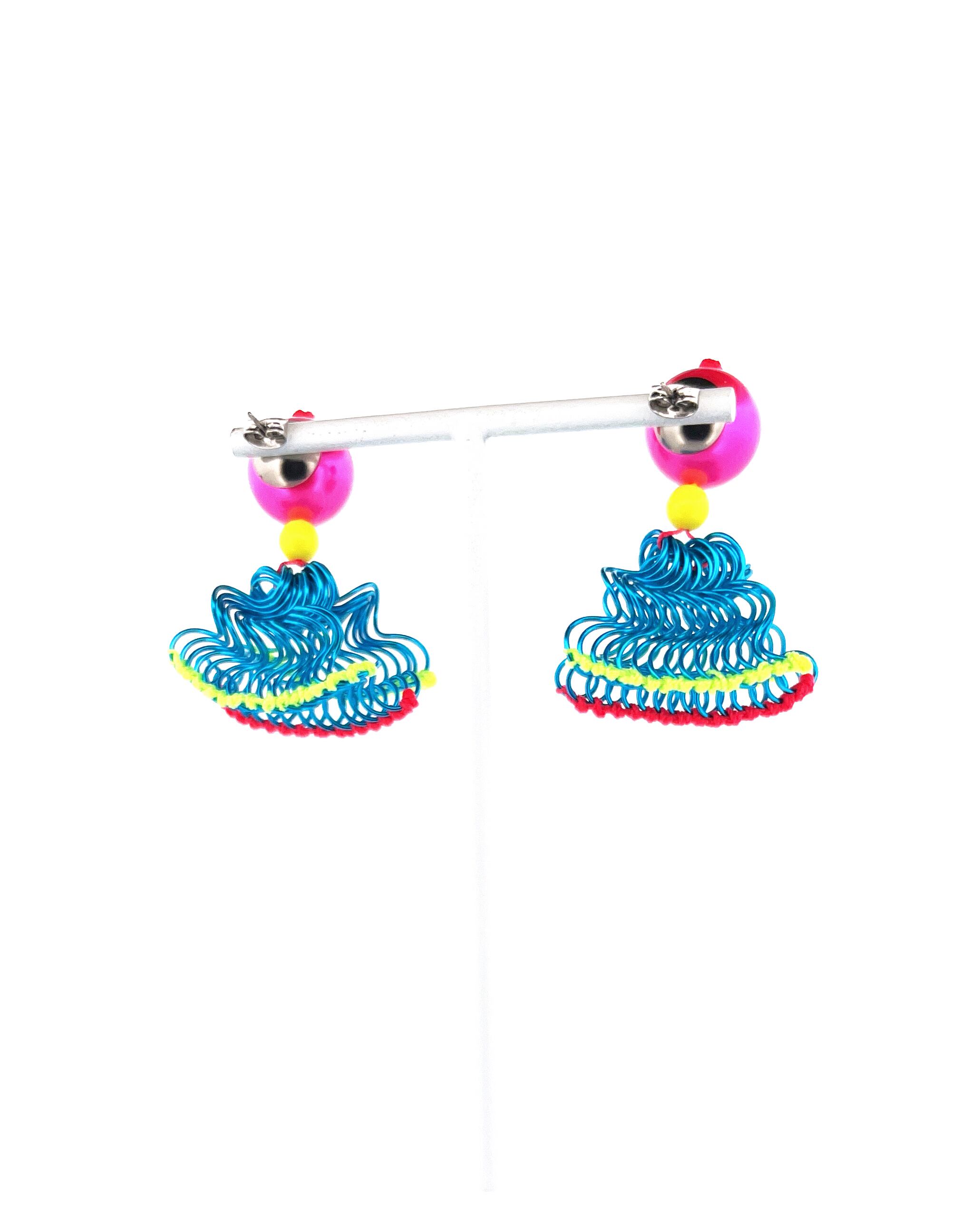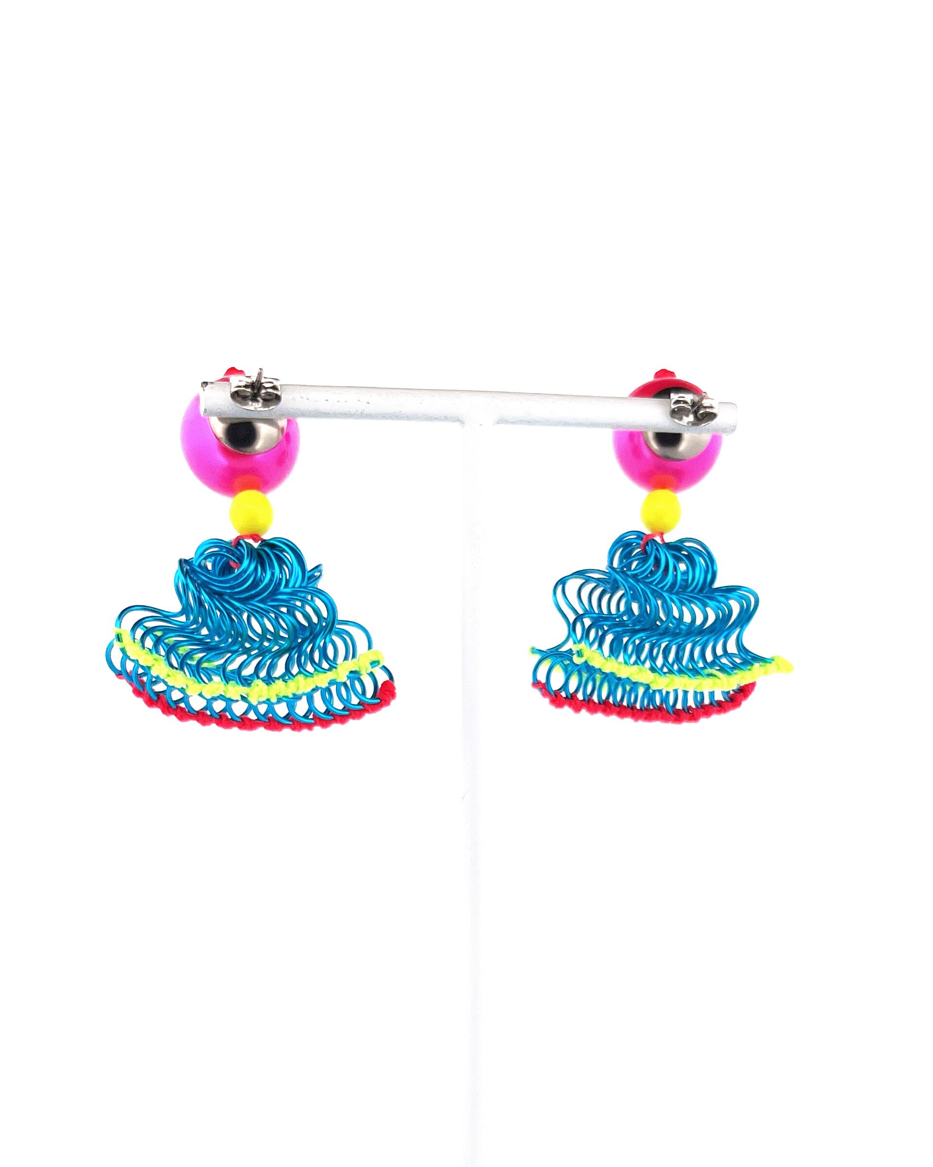 フリルの持つ軽やかさをワイヤーを形作り、糸で編むことで表現した作品です。