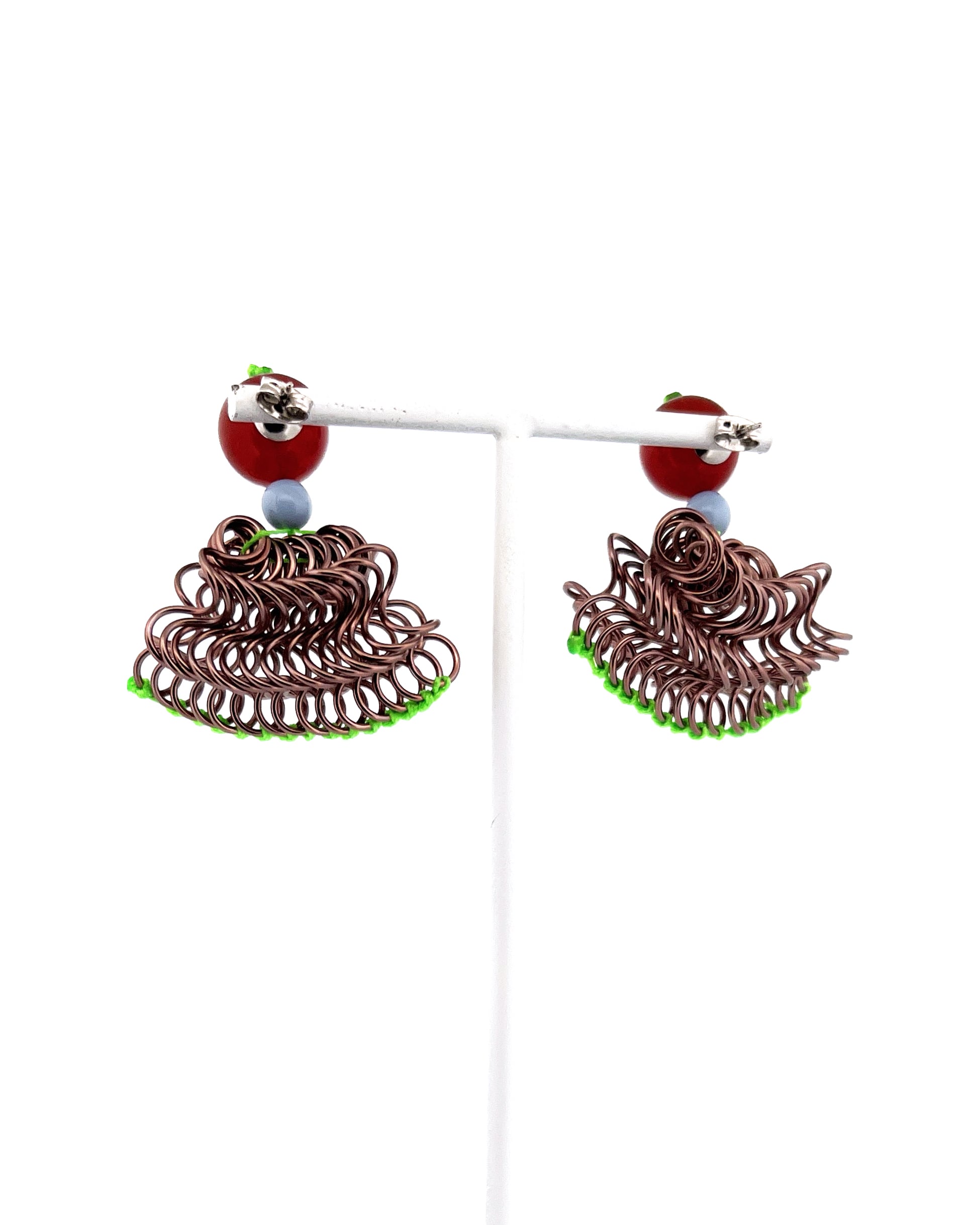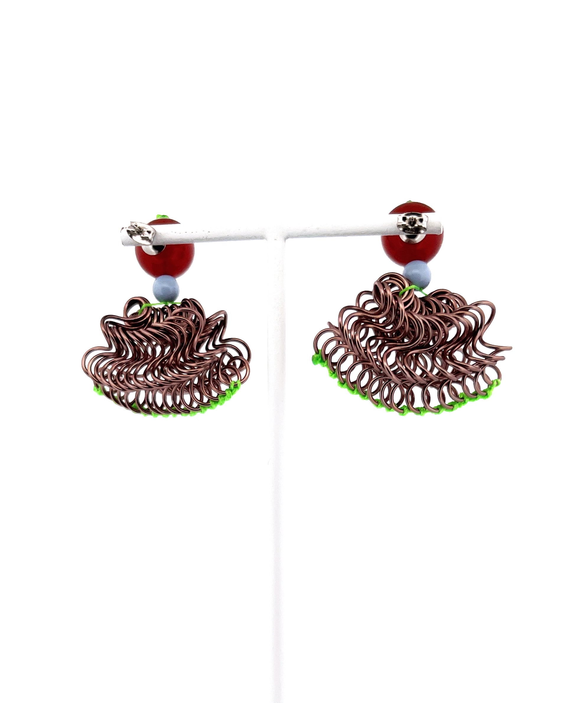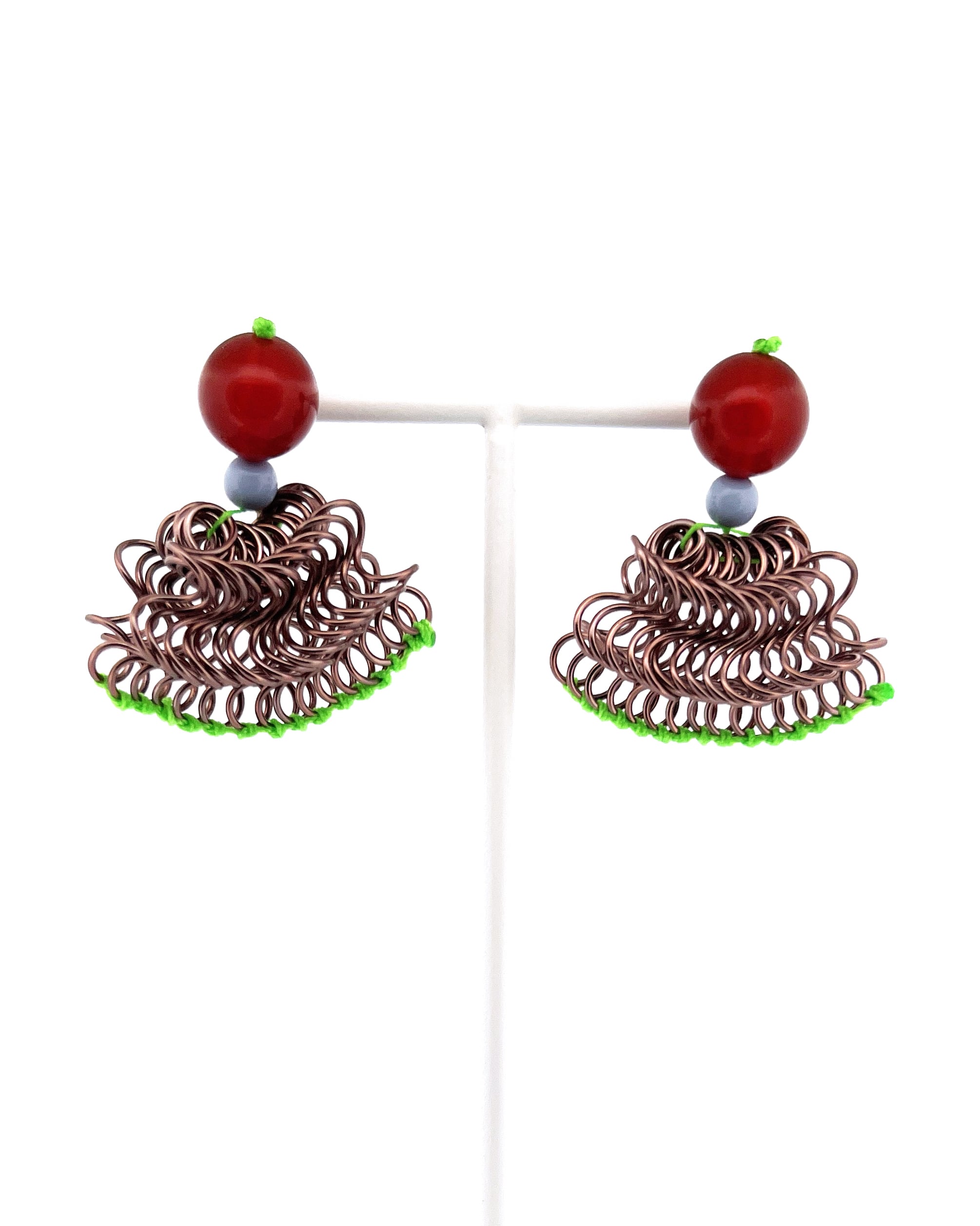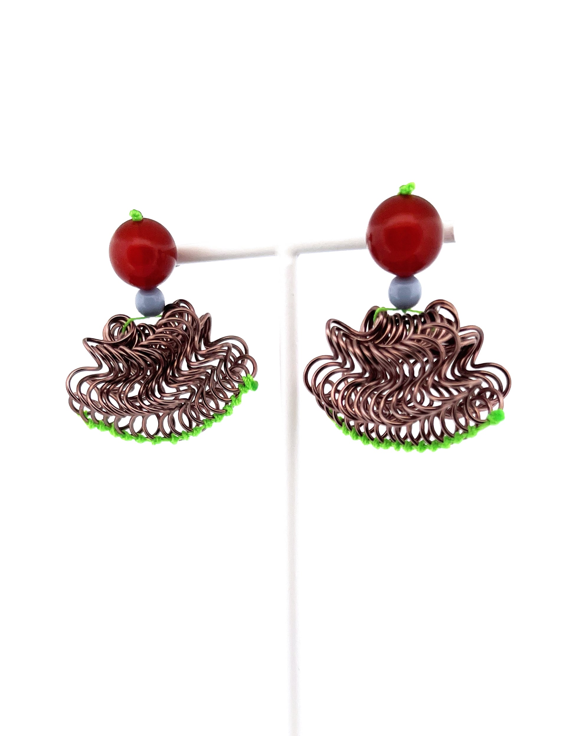フリルの持つ軽やかさをワイヤーを形作り、糸で編むことで表現した作品です。