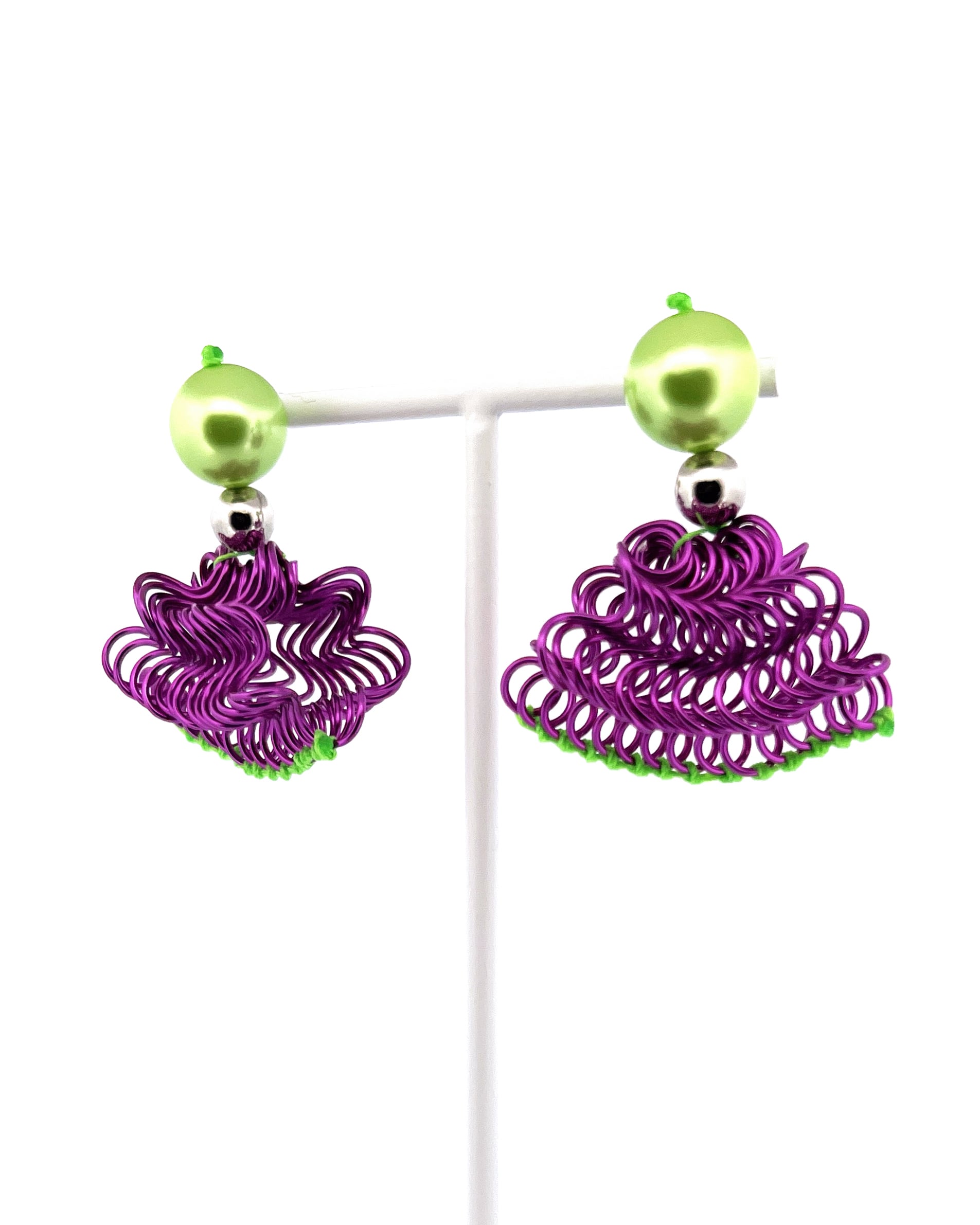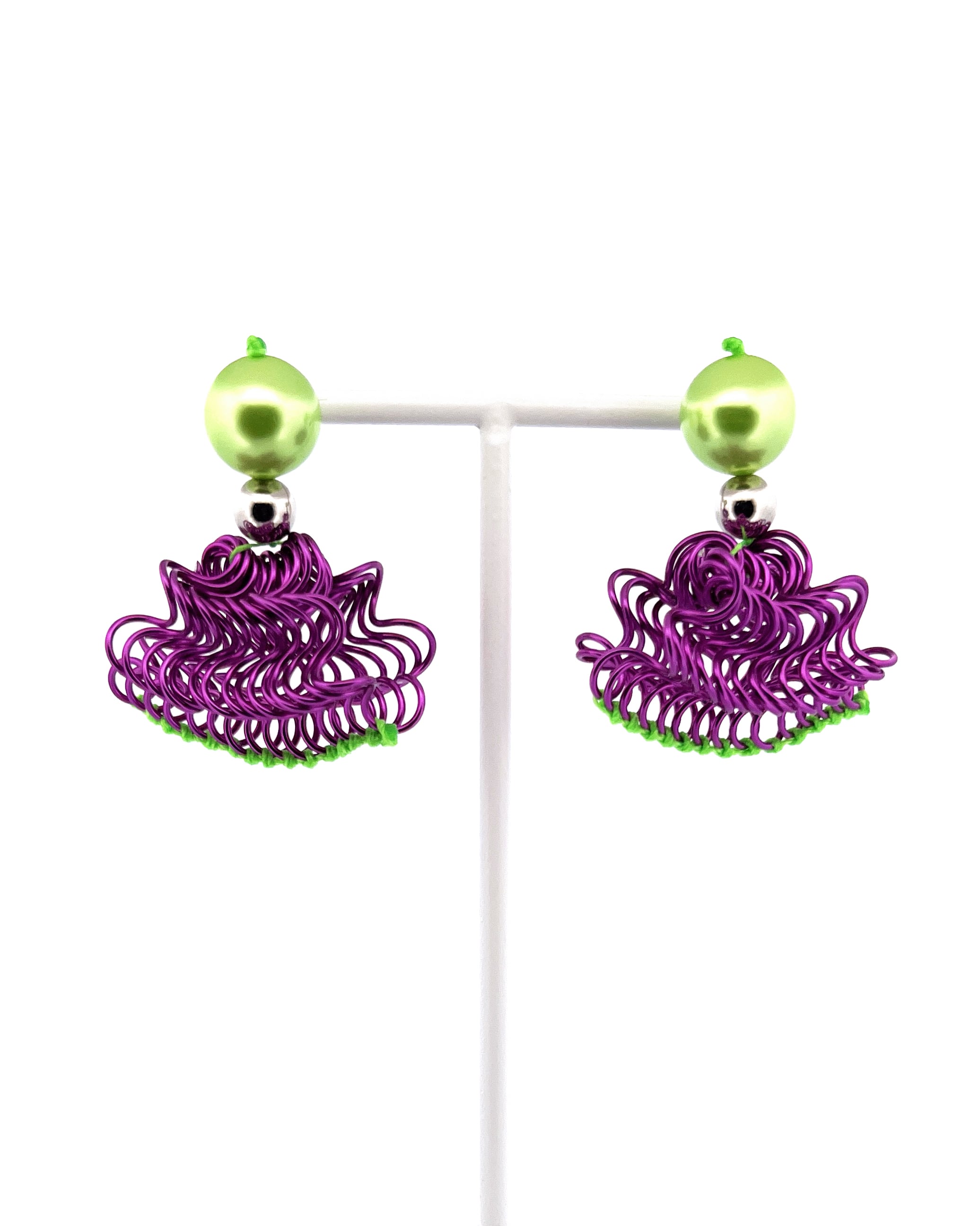 フリルの持つ軽やかさをワイヤーを形作り、糸で編むことで表現した作品です。