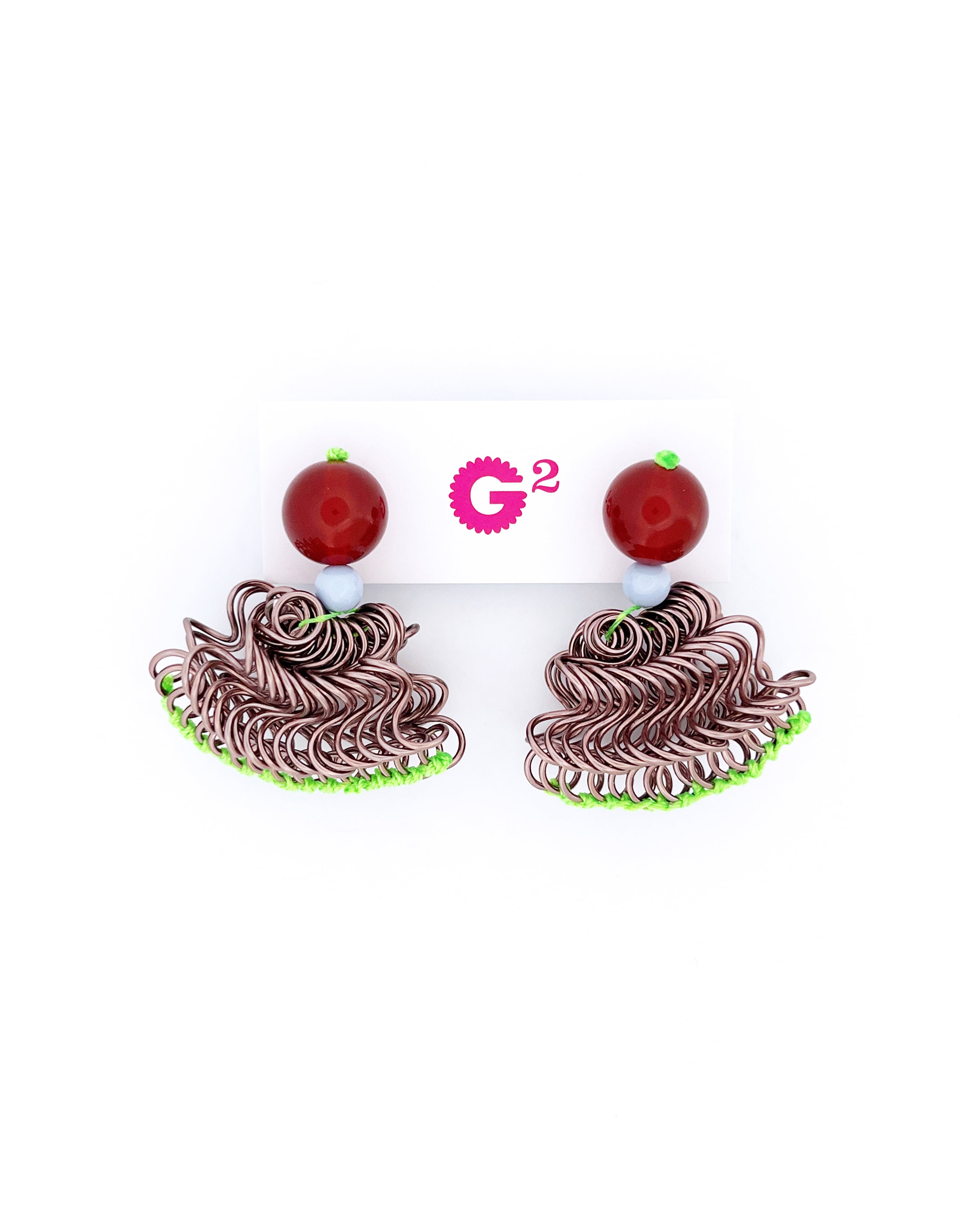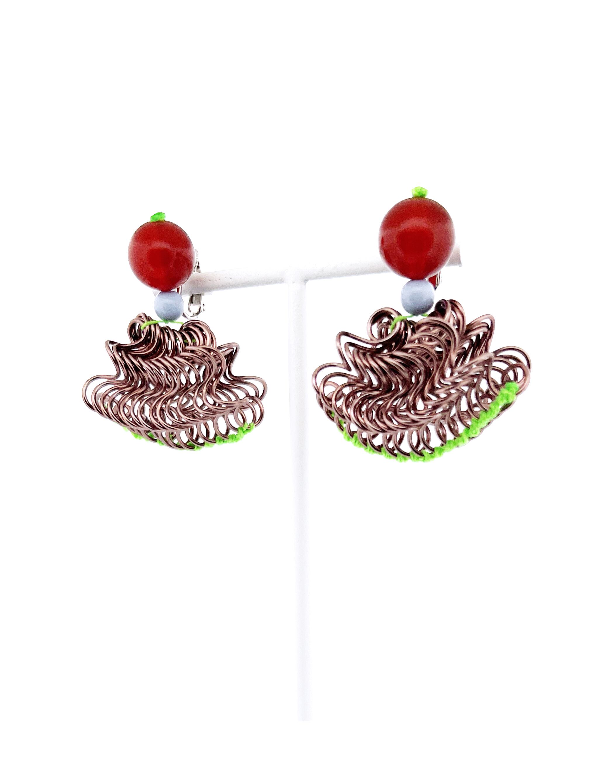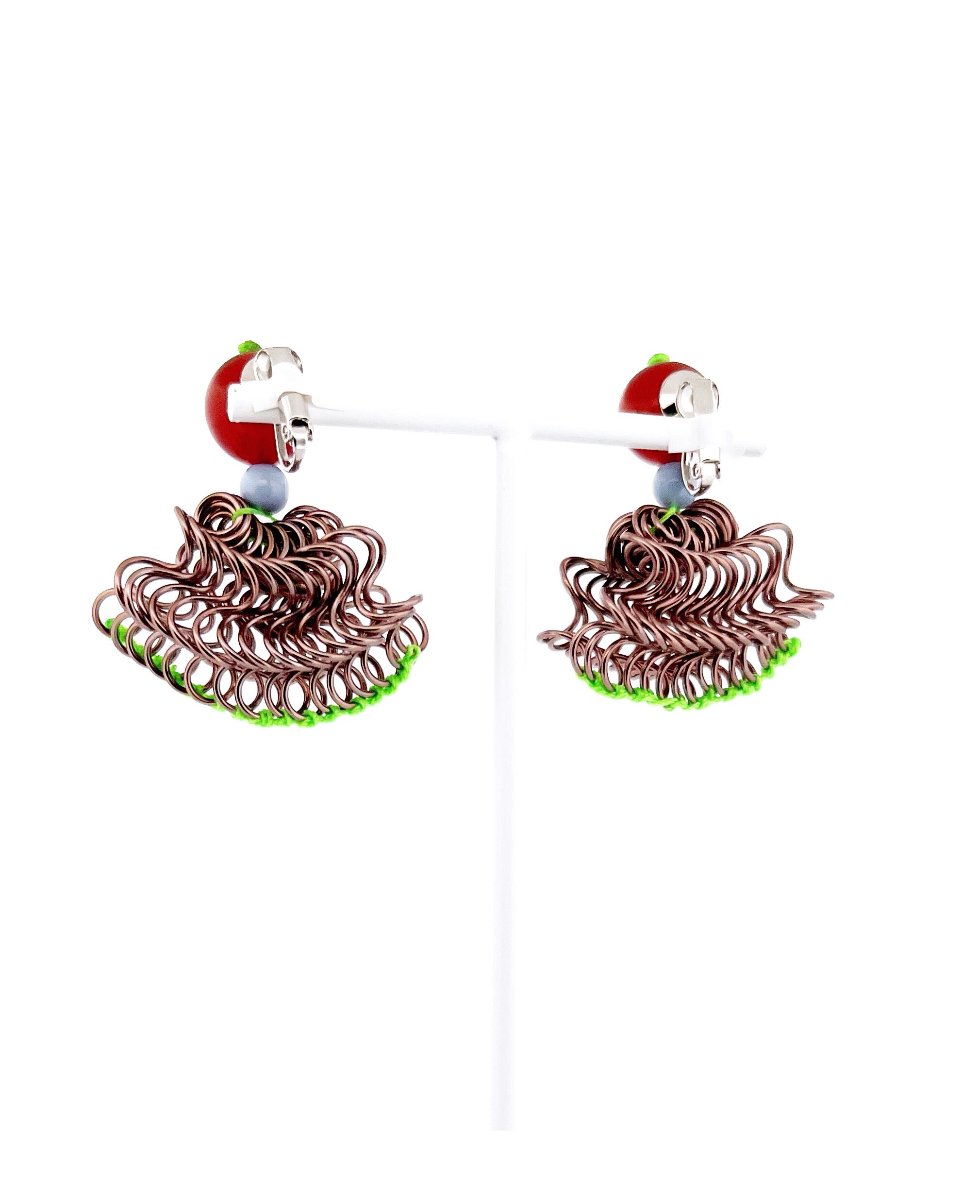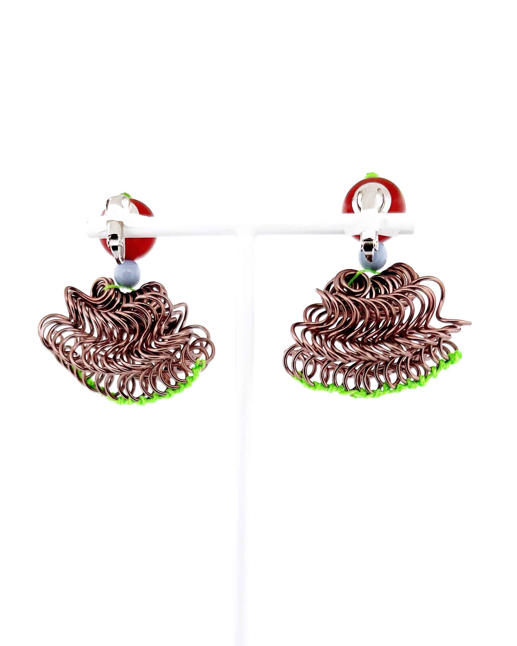 フリルの持つ軽やかさをワイヤーを形作り、糸で編むことで表現した作品です。