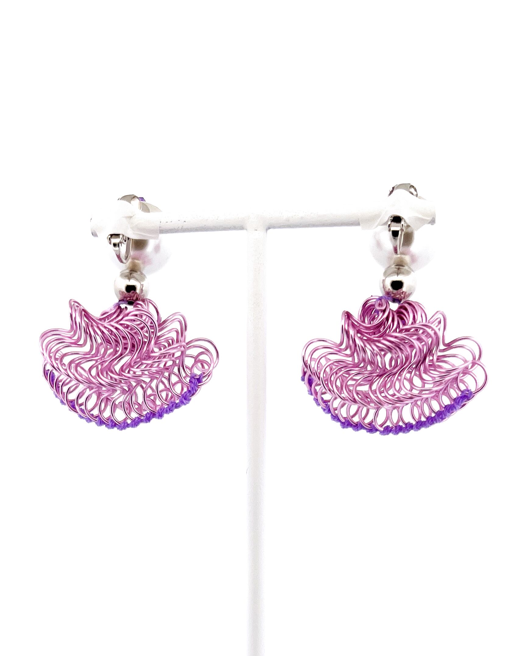 フリルの持つ軽やかさをワイヤーを形作り、糸で編むことで表現した作品です。